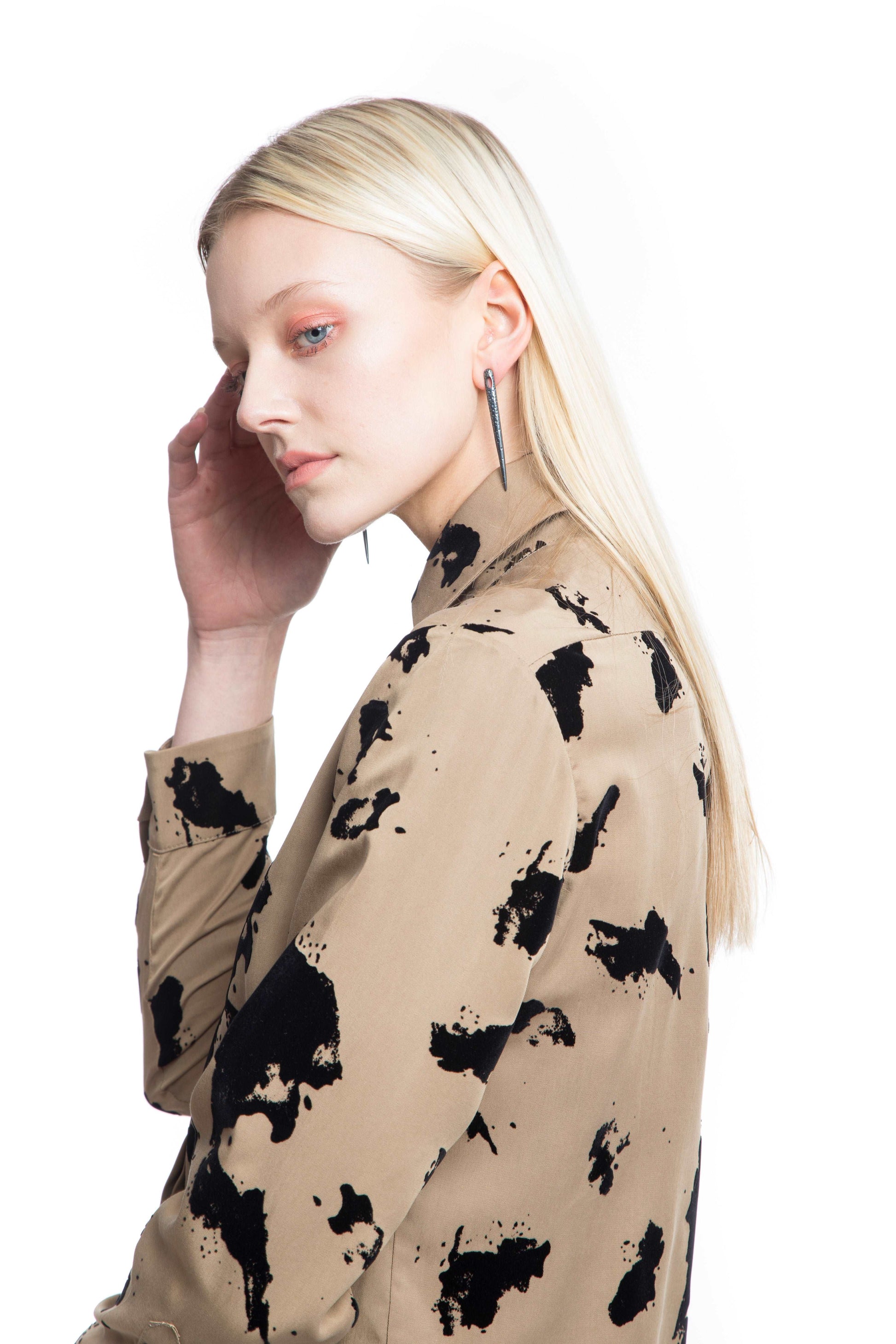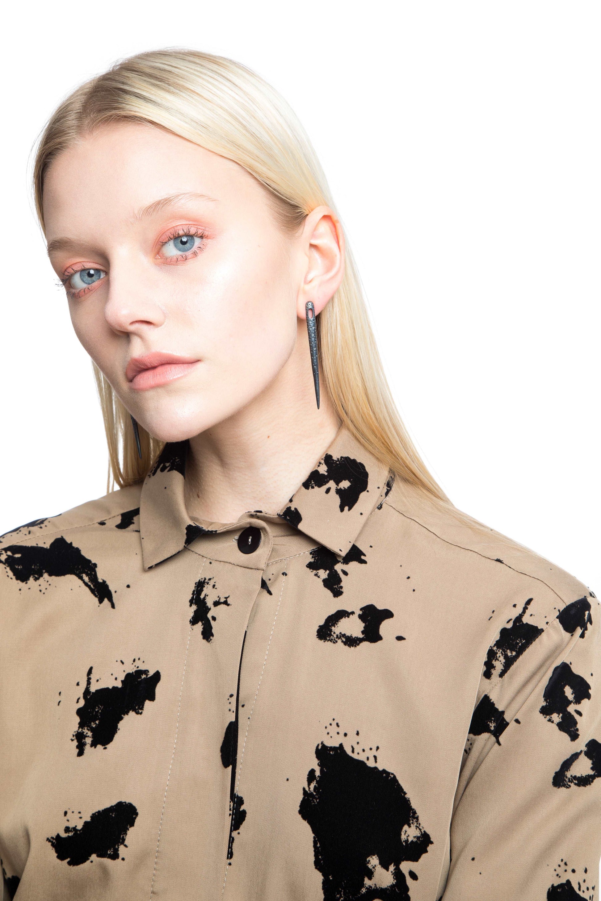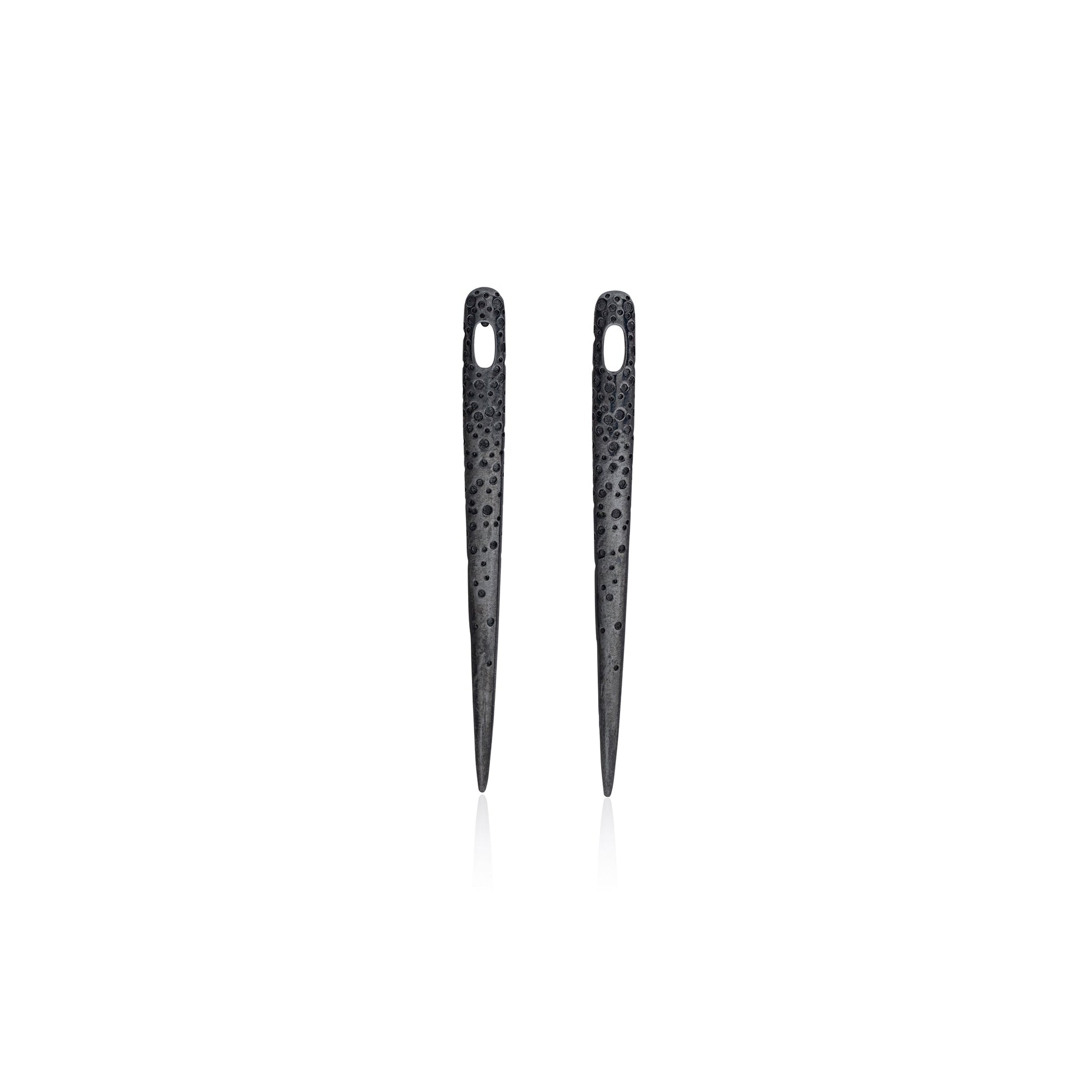 Carr Oxidized is a stylish pair of stud needle earrings from Ninobrand. These earrings are 2.5 inches in length and feature a unique oxidized finish. They are perfect for adding a touch of sophistication to any outfit.