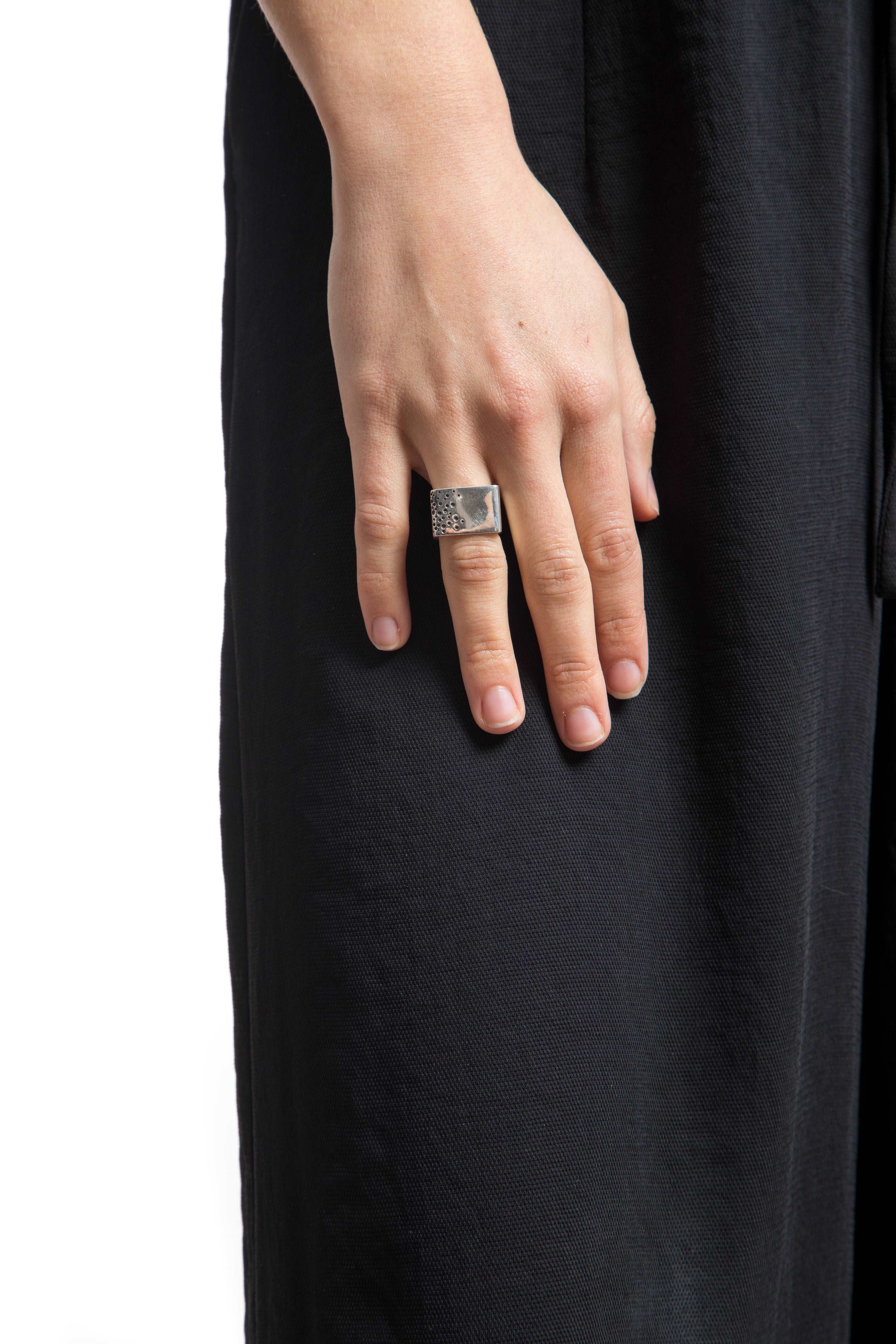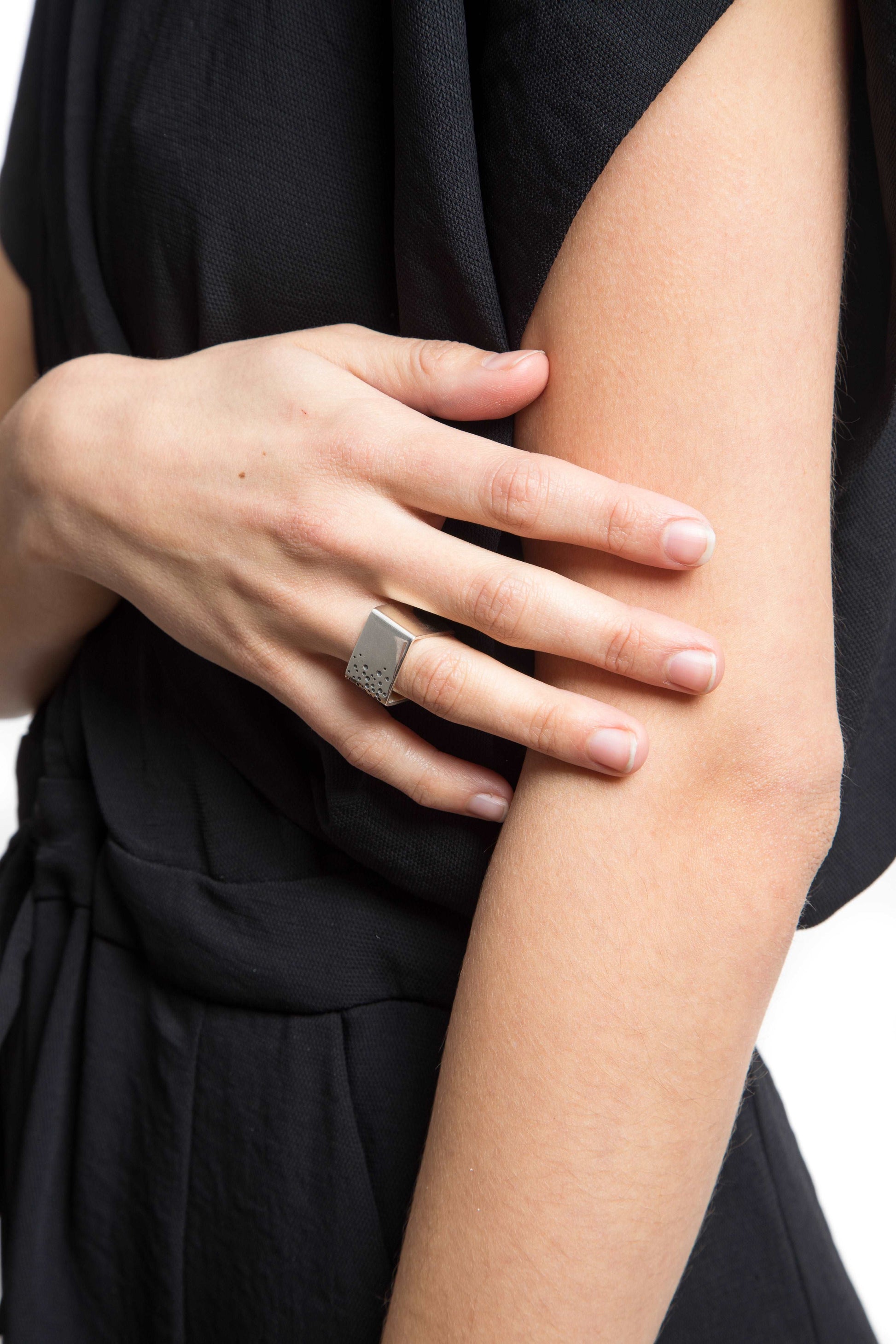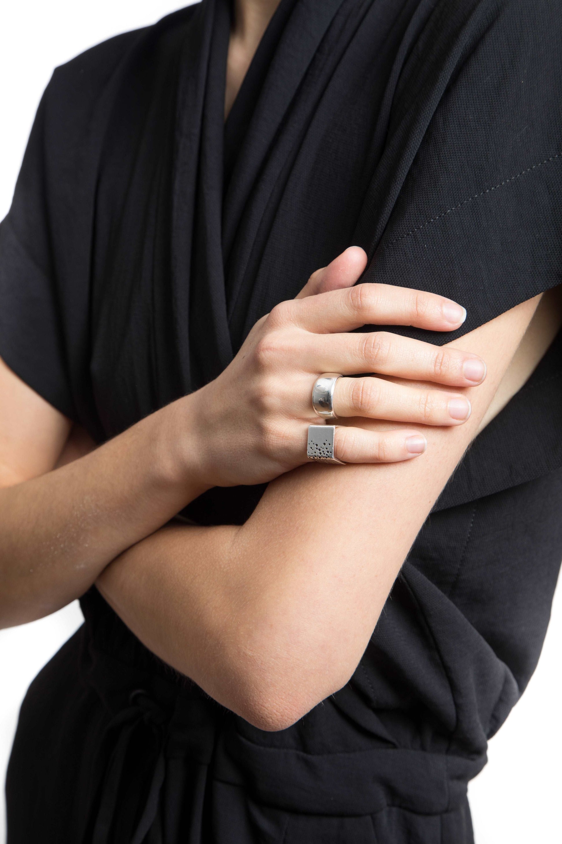 Cubo is a unique and stylish ring made of sterling silver. It features a perforated cube design that is sure to make a statement. The ring is lightweight and comfortable to wear, making it perfect for everyday use.
