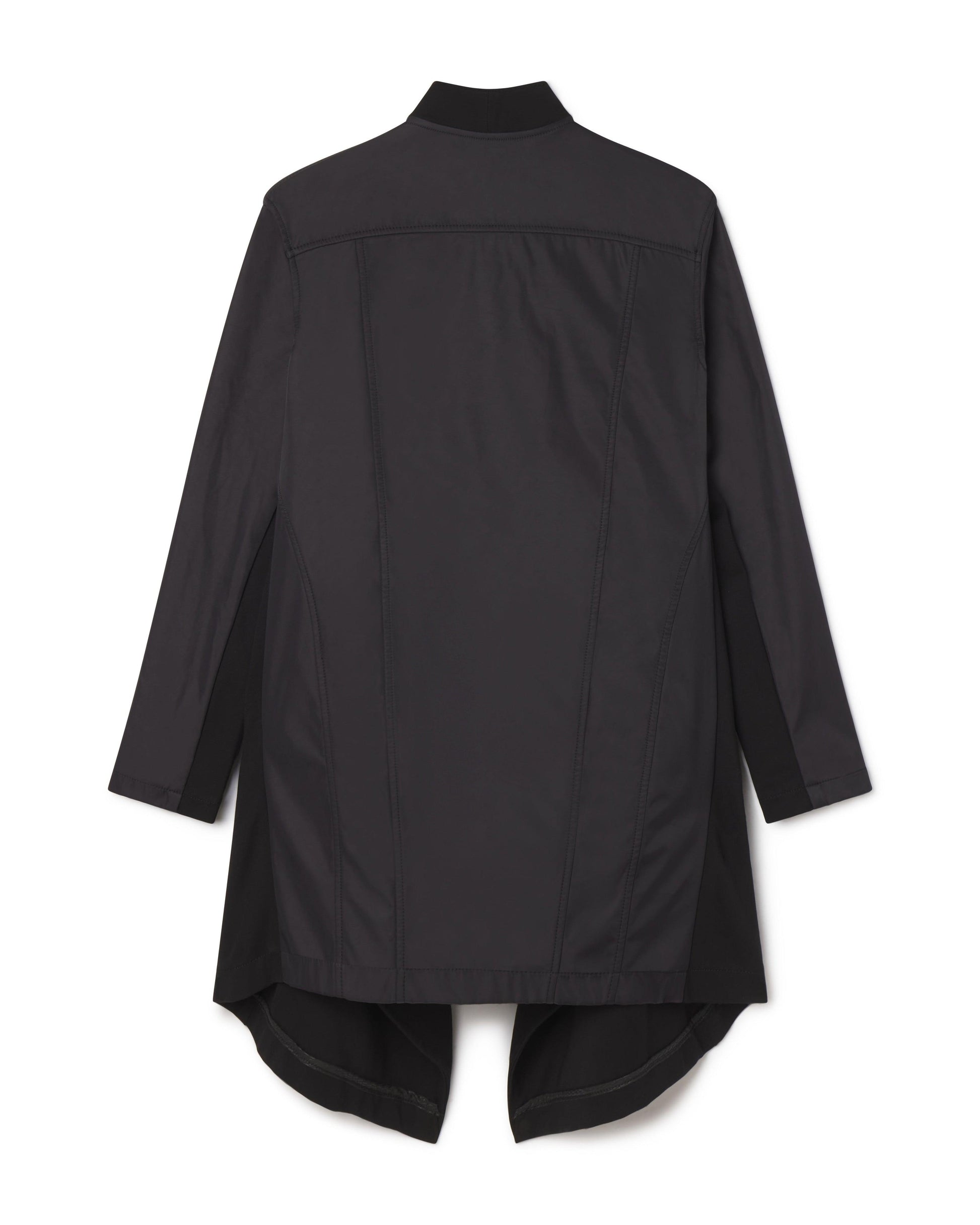 The Elemental Hybrid Jacket embodies the dualities present within nature, blending the fluidity of dramatic draping with the structure of a tailored jacket. Inspired by the natural elements, this piece speaks to the contrasts we often encounter on our journeys—both in the world around us and within ourselves. The jacket is symmetrical when worn open and becomes asymmetrical when closed, representing the adaptability required as we navigate various circumstances. With its unique design, the Elemental Hybrid Jacket reflects the balance between chaos and order, freedom and structure, as we move through the elements of life.
