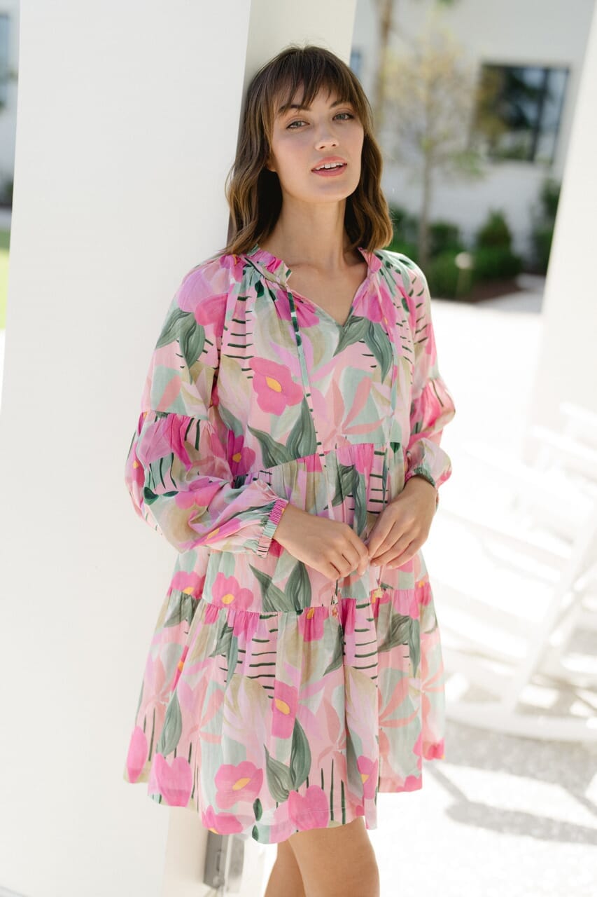 Get ready to turn heads in the Eliza Dress - Frosted Blush! With a playful tiered design and a resort-inspired frosted blush print, this mini dress is perfect for any occasion. Featuring lovely florals and accents of refreshing mint and green, this dress will make you stand out from the crowd. Don't miss out on this one!