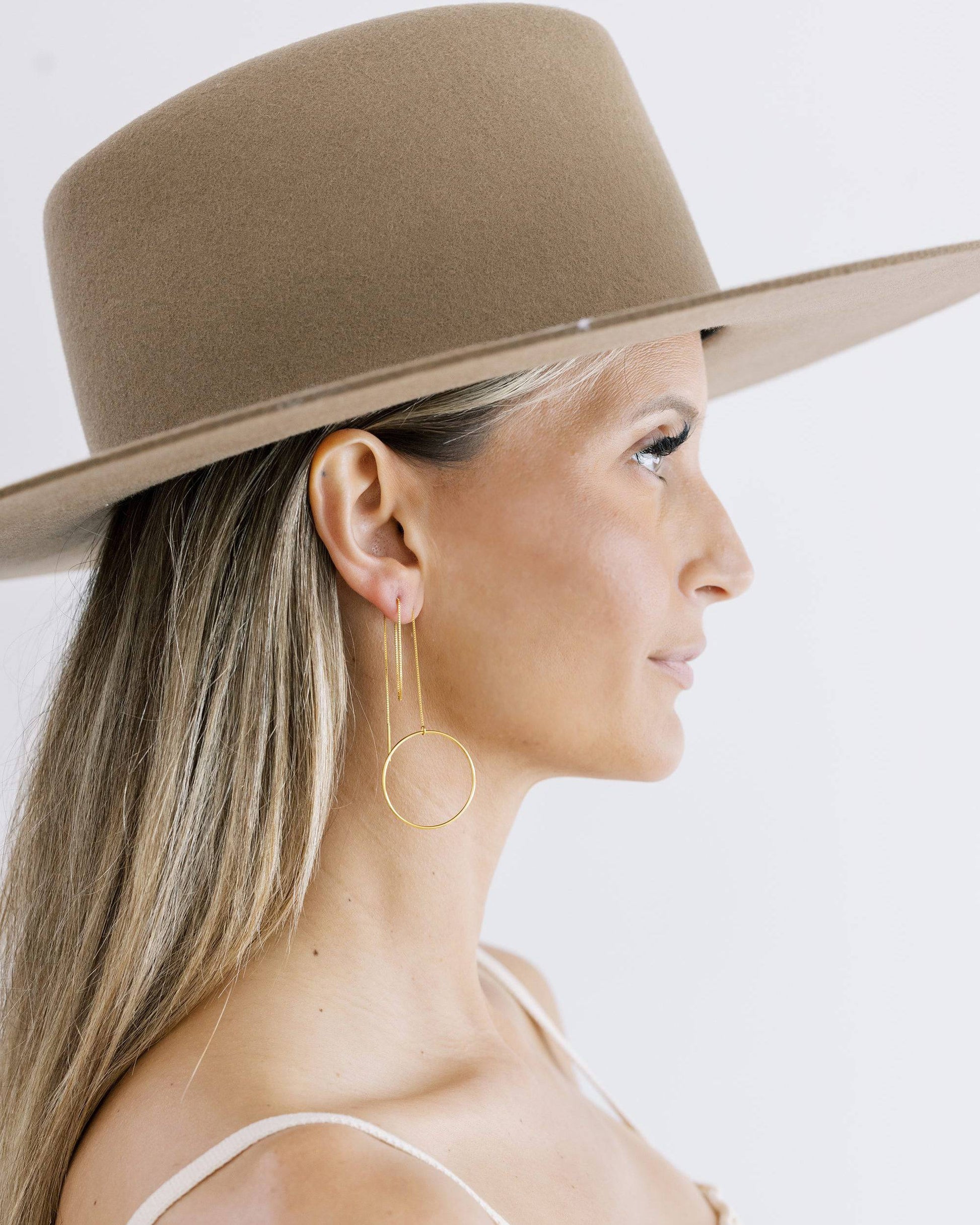 These gold vermeil circle drop earrings are beautiful and unique. Their design is elegant, making them perfect for any special occasion or everyday wear.
