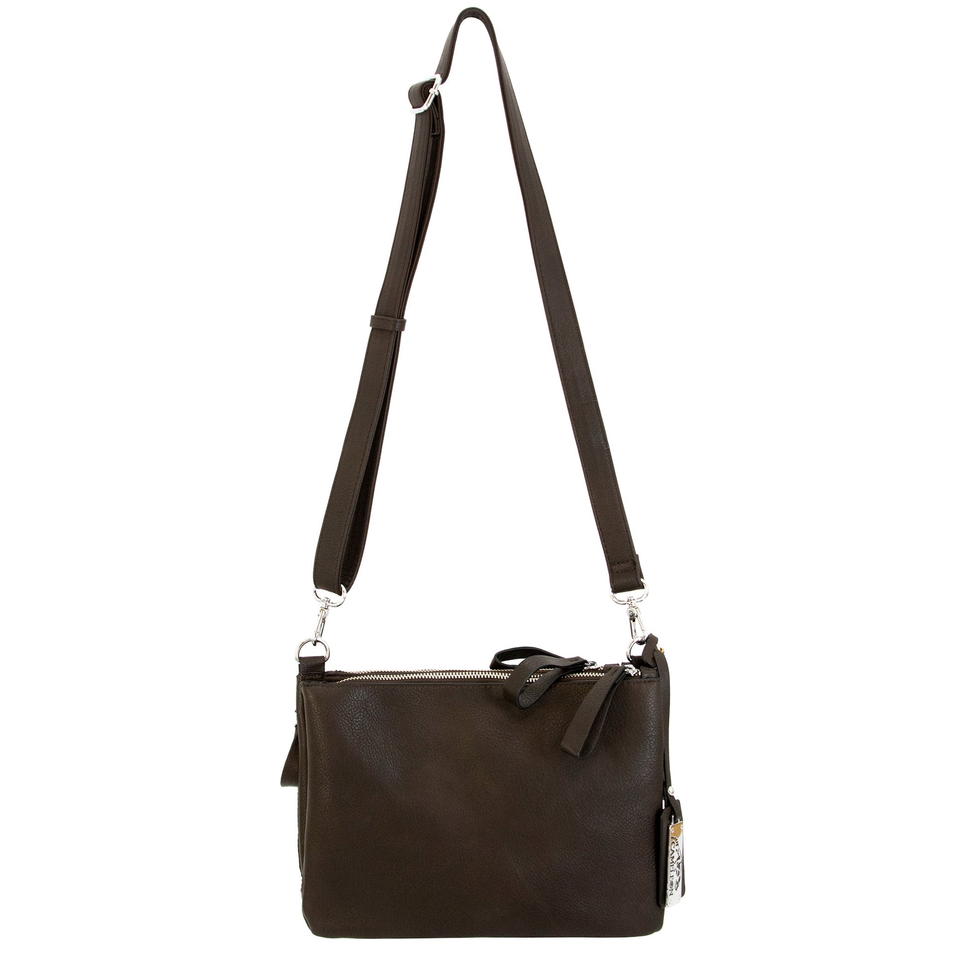 Its casual and compact design makes Iris one of the most comfortable crossbody bags that you can have! It has three spacious pockets for all of your necessary items. Includes a cell phone pocket as well as a rear pocket for your small items. Made from vegan leather, this handbag is extremely lightweight and can be used as either a clutch or crossbody. The removable shoulder strap is reinforced with a cut-resistant metal wire for added security. The concealed carry pocket is located in the center of the bag and has access from either the left or right side as well as the top.