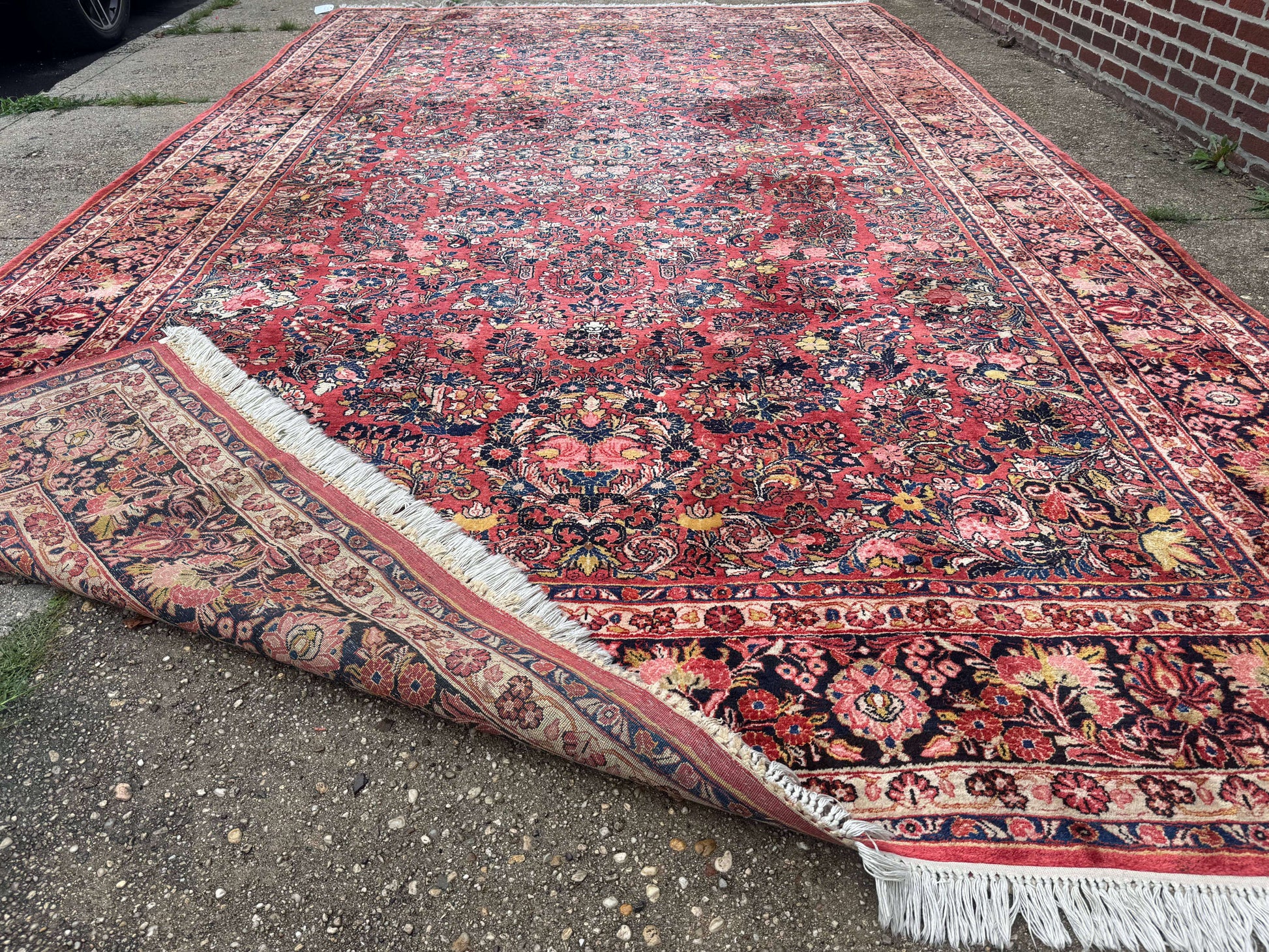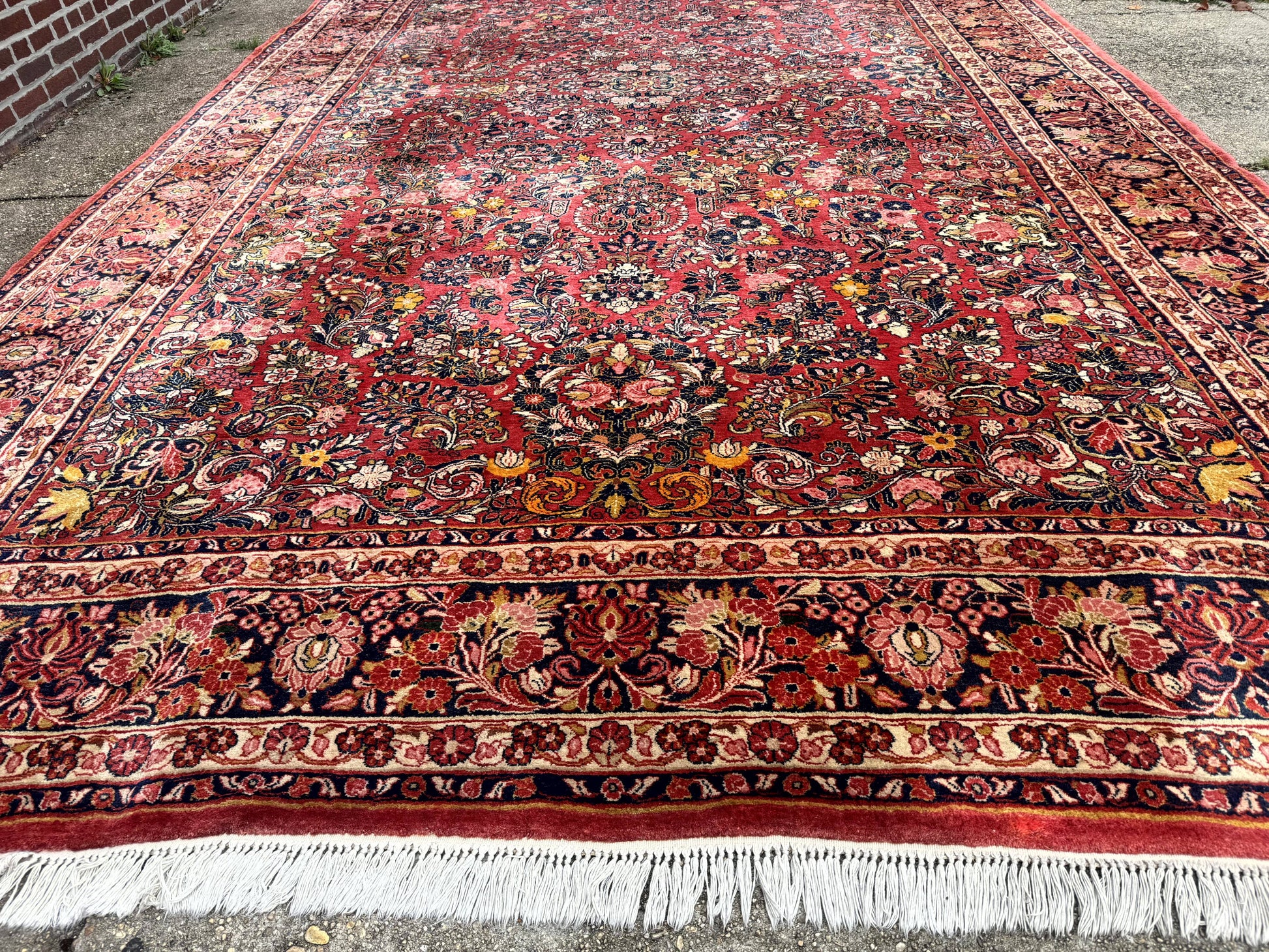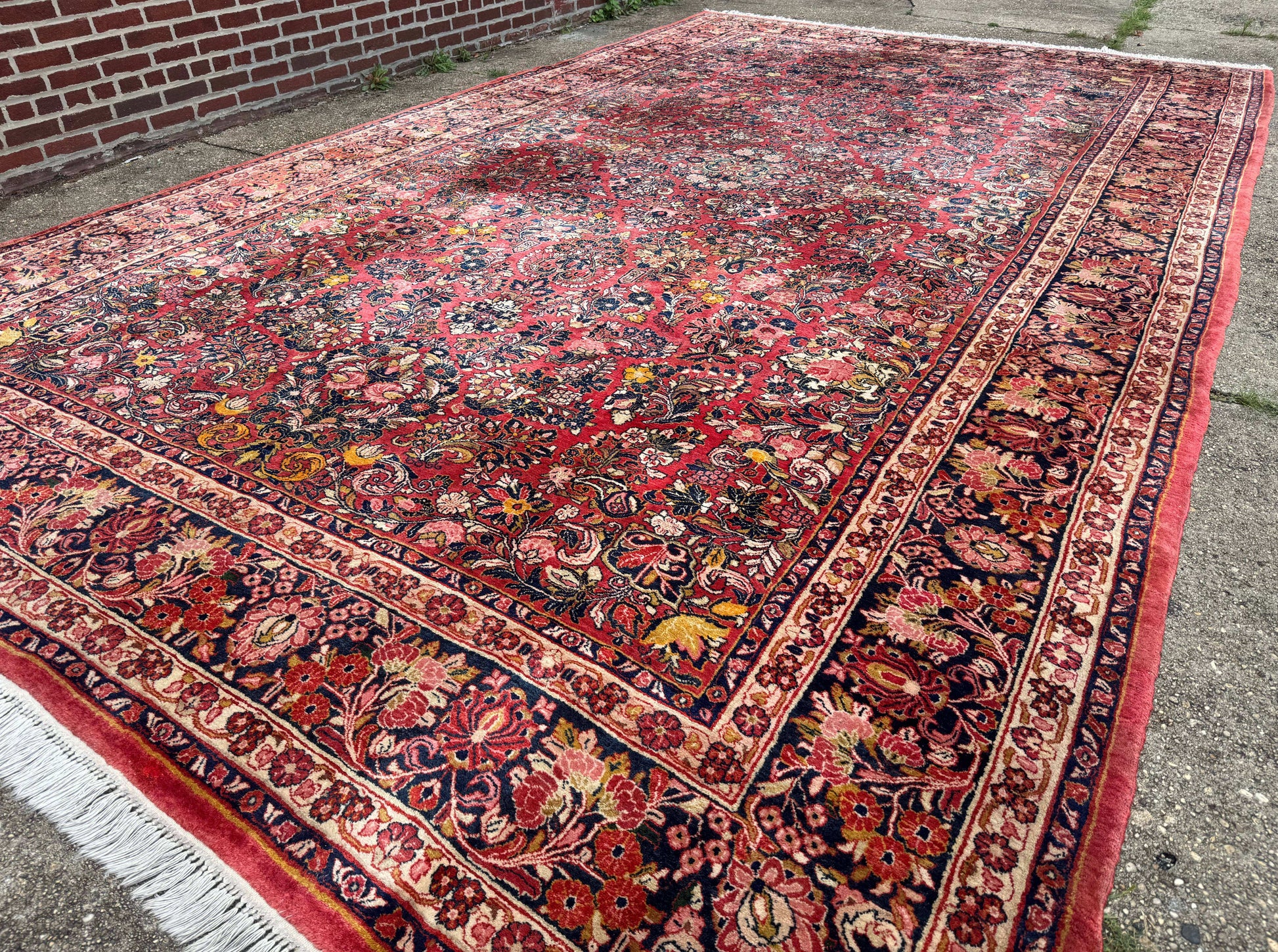 Large Antique Persian Sarouk Rug 11x18, Red, Floral Allover, Palace Size Wool Handmade Carpet