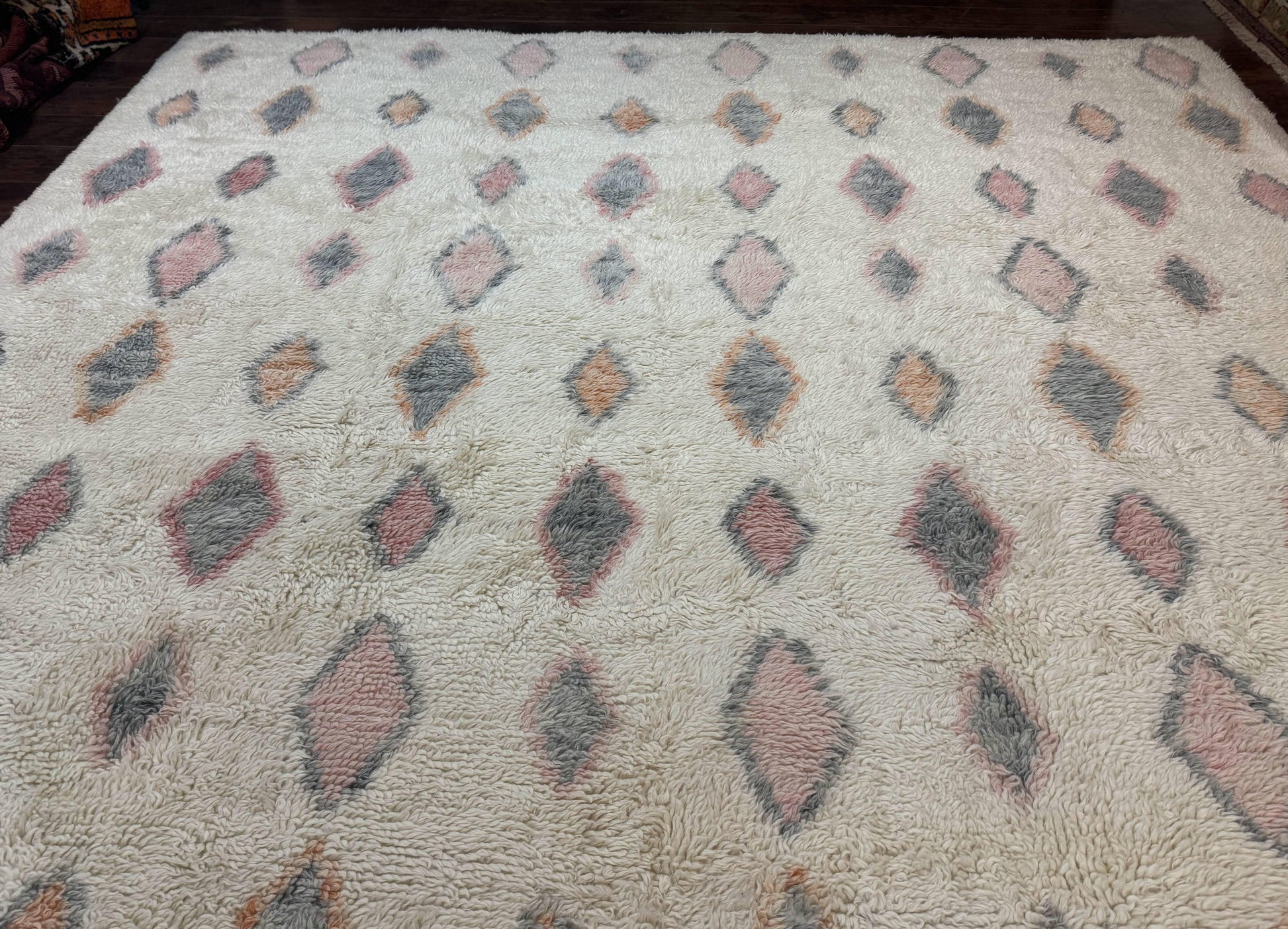 Large Modern Contemporary Indian Shag Rug 11x14, Ivory, Handmade Wool Carpet