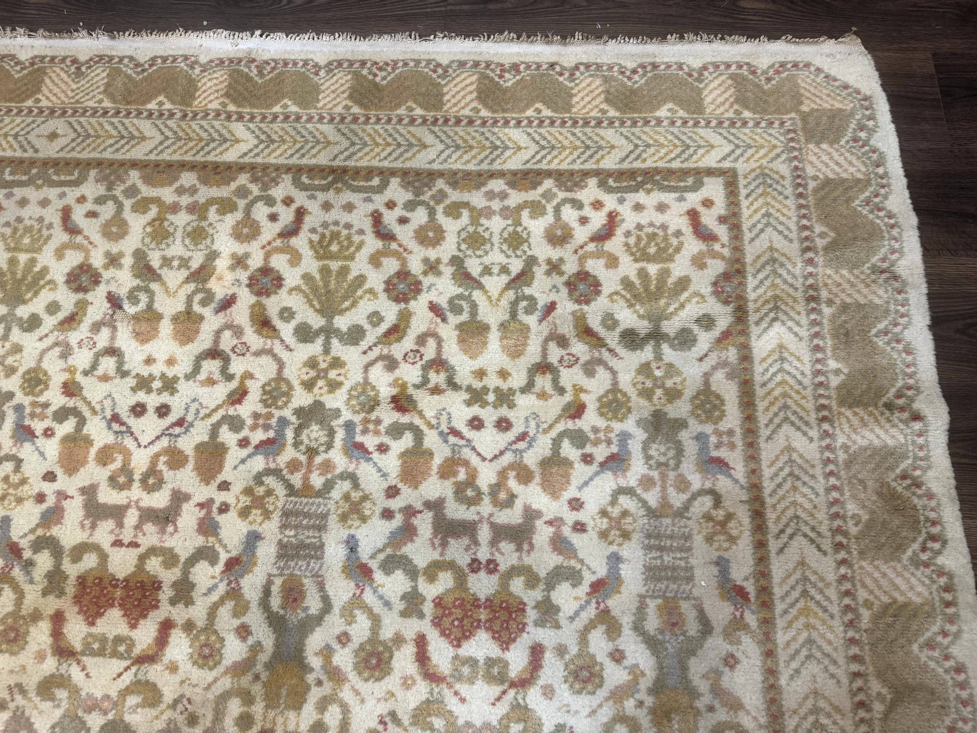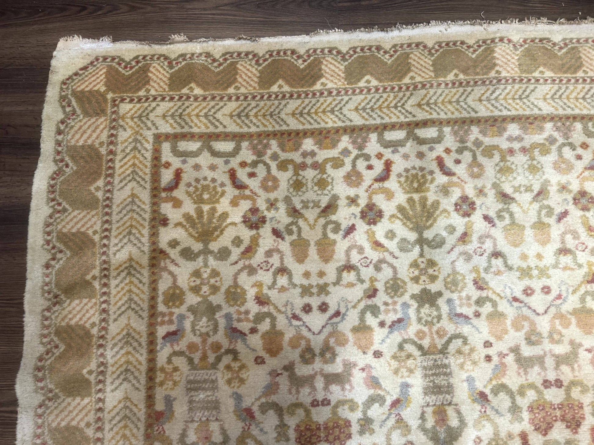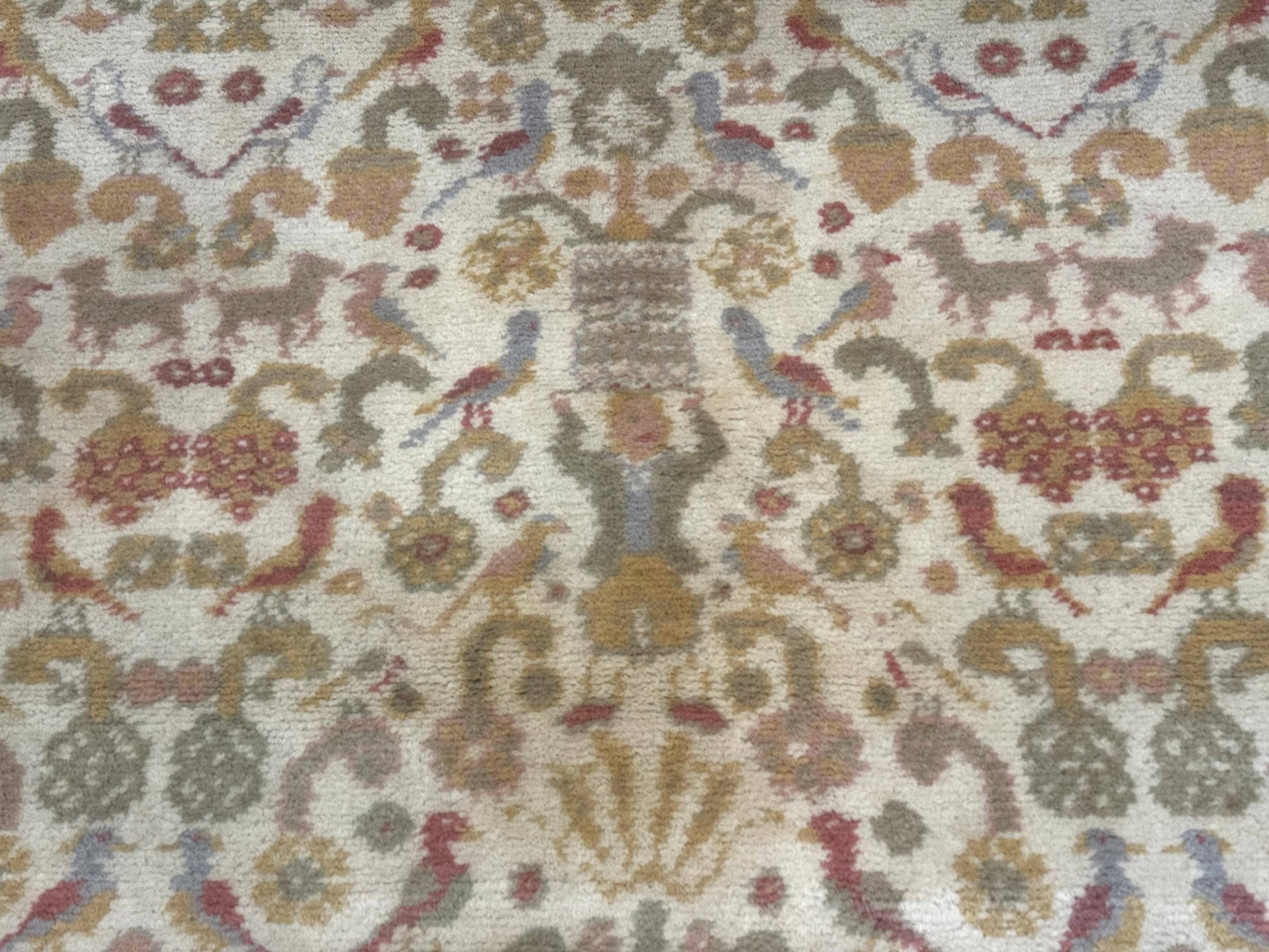 Condition/Notes | Very good condition. Allover pattern with human and animal pictorials, such as birds and dogs. Free of stains, odors, discolorations, tears, etc. Recently cleaned and ready to be enjoyed in your space. |