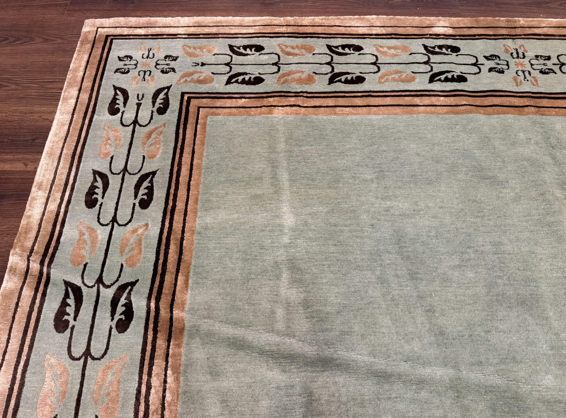 Palace Size Nepali Rug 9x18, Open Field, Light Mint Green, Wool Hand Knotted, Modern Contemporary