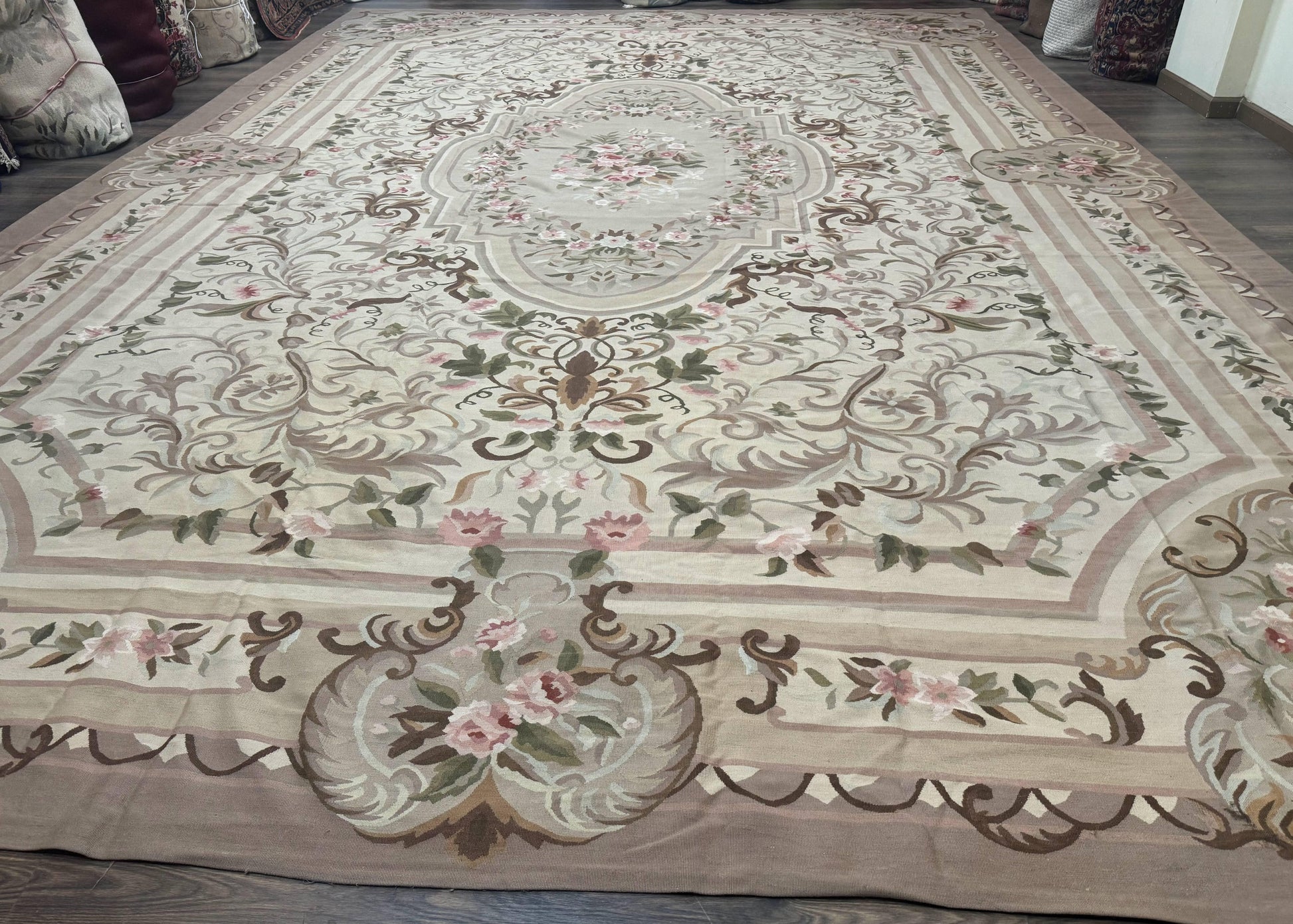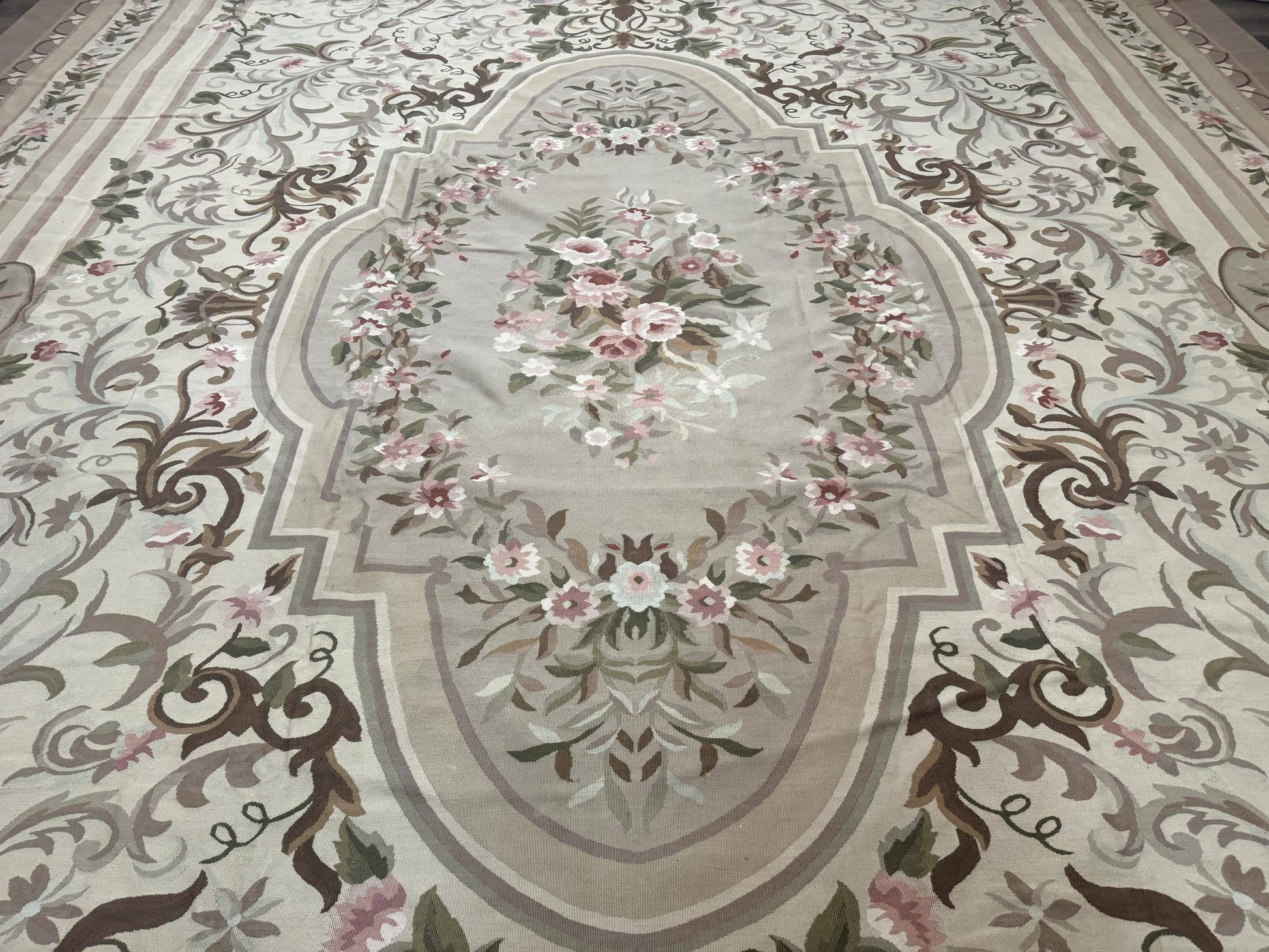 Palace Sized Aubusson Rug 13 x 20, Flatweave Aubusson Weave, Oversized Rug, European French Elegant Design