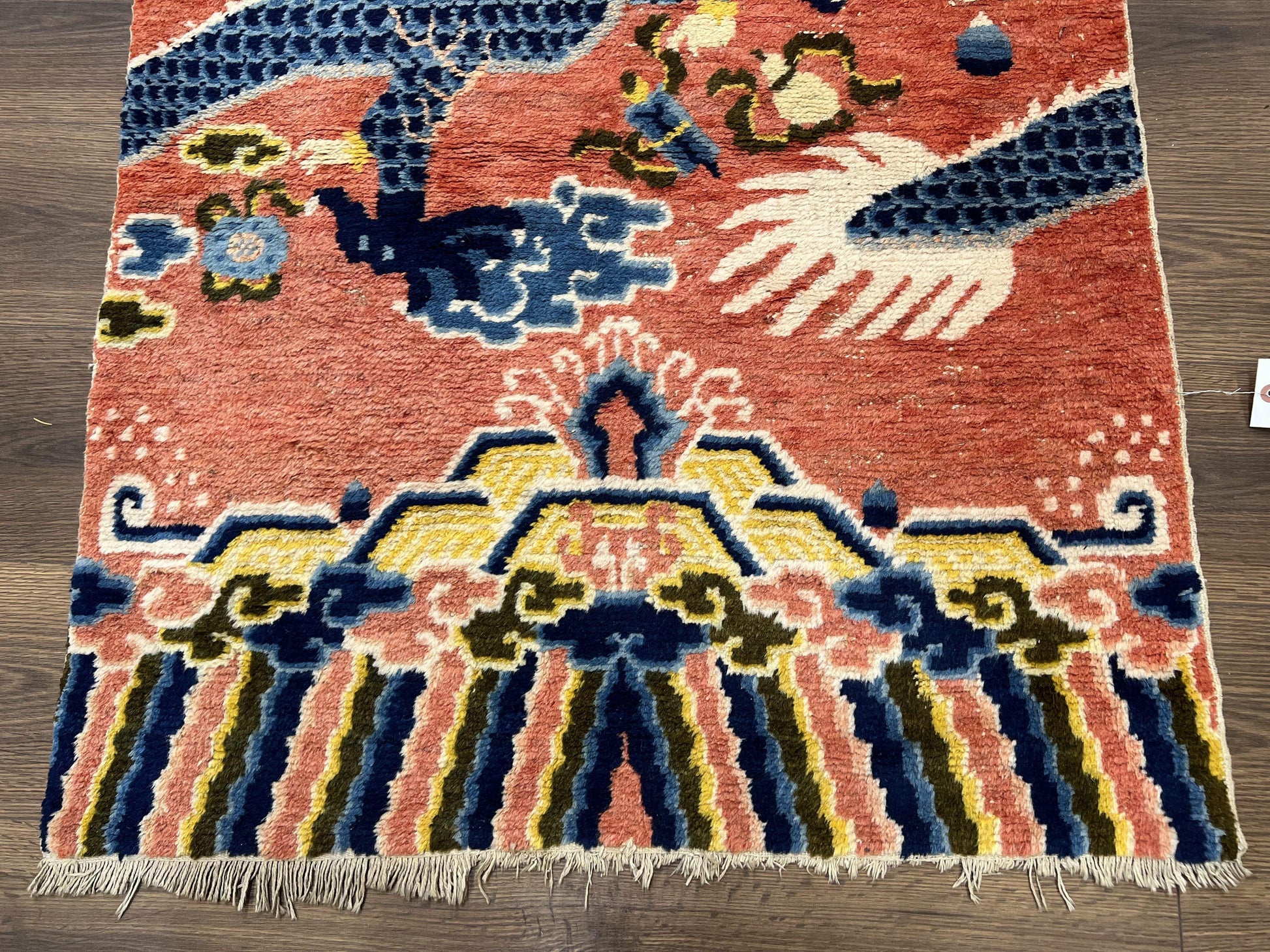 Condition/Notes | A rare and highly collectible antique Chinese Ningxia pillar in very good condition. From the late Qing Dynasty (late 1800s/early 1900s). Features a 5 clawed dragon above a cloud-form rainbow border. Free of stains, odors, discolorations, tears, etc. Good pile & fringes. Recently cleaned and ready to be enjoyed in your space. |