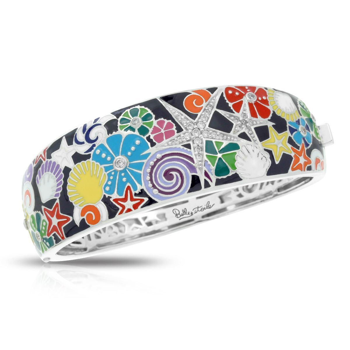 Black: Hand-painted black and multicolored Italian enamel with pave-set stones set into rhodium-plated, nickel allergy-free, 925 sterling silver.
