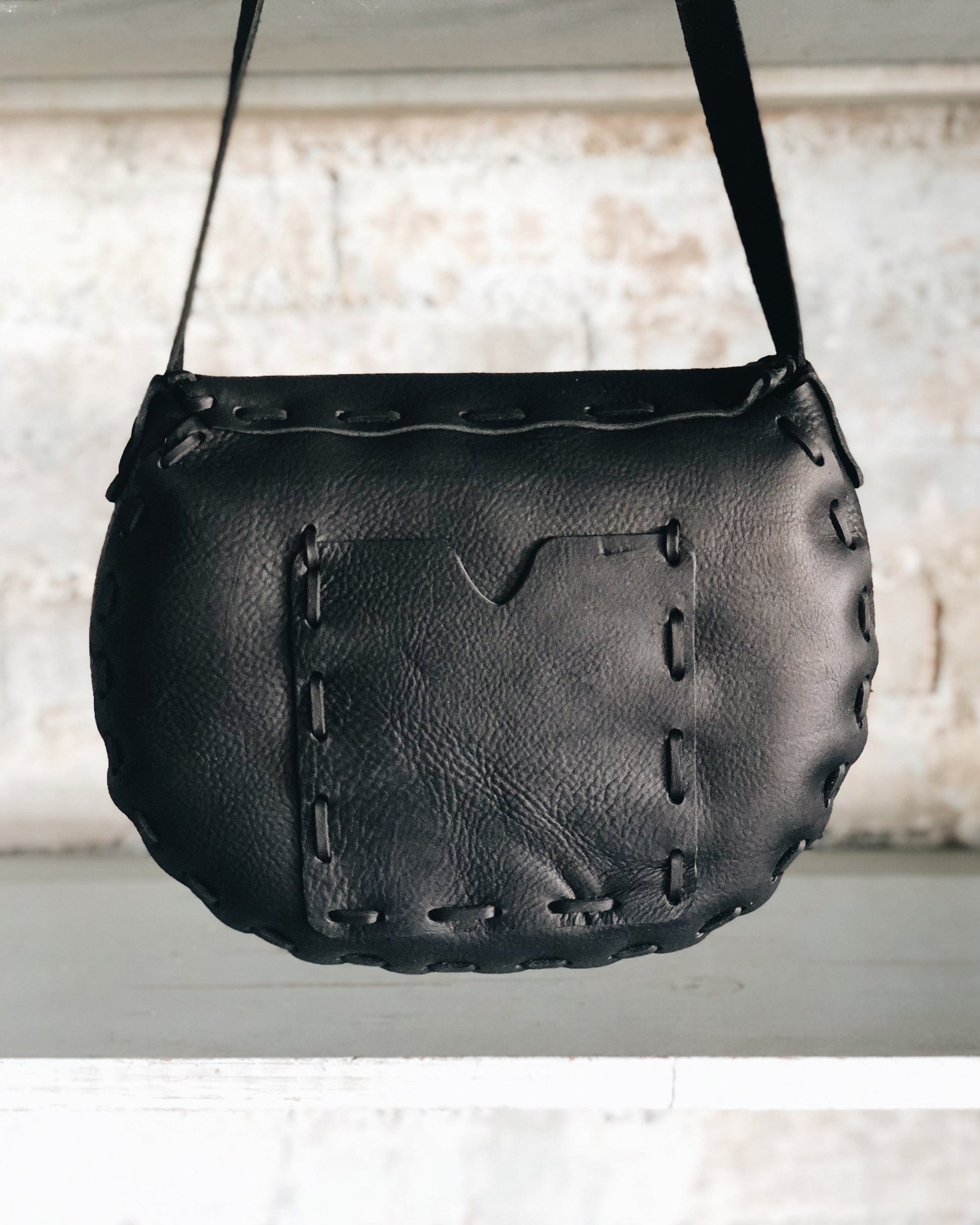 - Rustic black leather