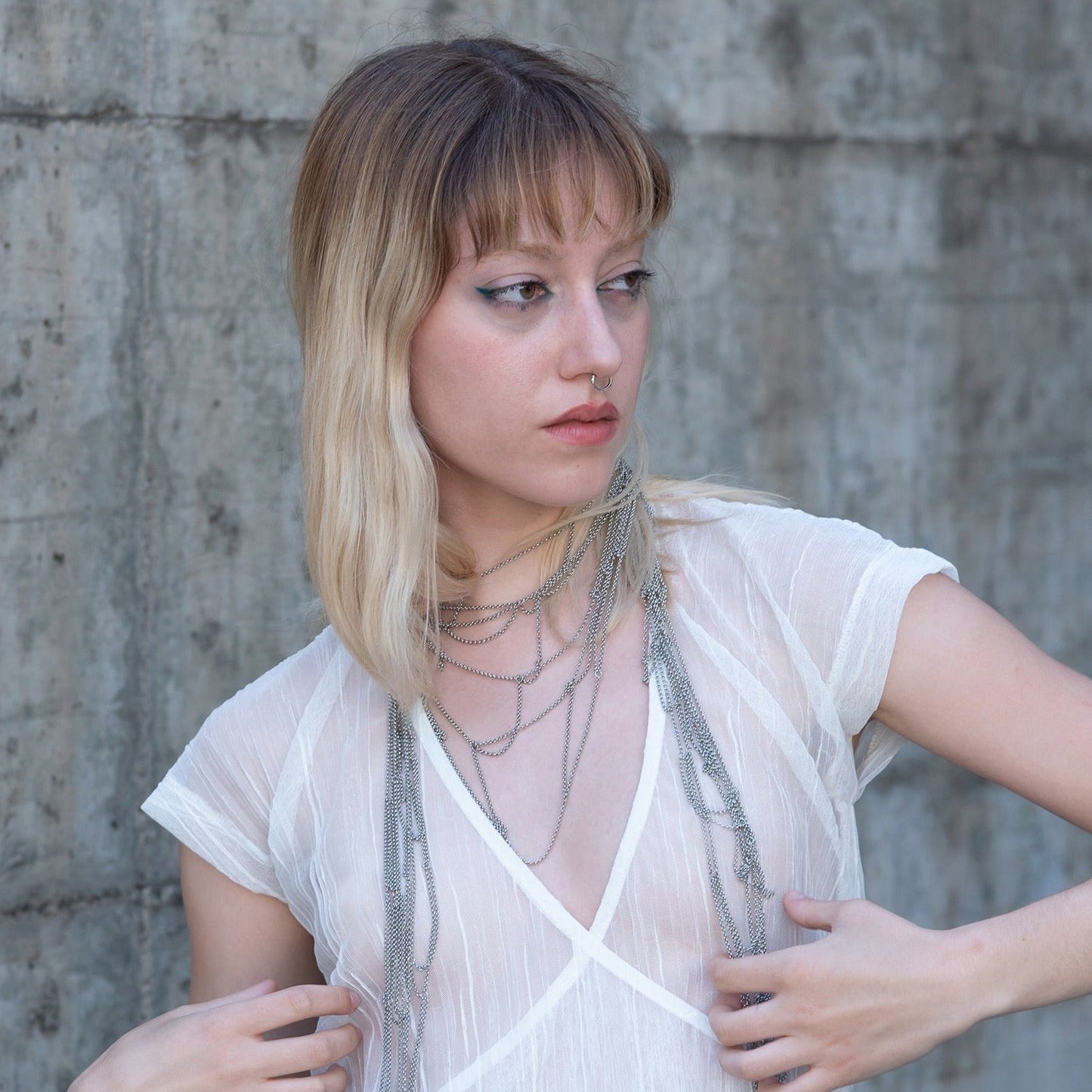 Handcrafted from stainless steel, this chain shawl can be worn over a top or around the neck. Whether you're dressing up for a special occasion or just want to add a touch of luxury to your everyday look, this scarf is the perfect choice to take your outfit to the next level.