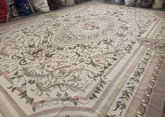 Palace Sized Aubusson Rug 13 x 20, Flatweave Aubusson Weave, Oversized Rug, European French Elegant Design
