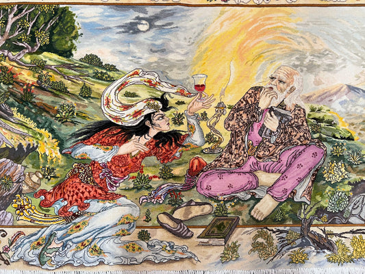 Vintage Persian Qum Pictorial Rug 5x7 - Wool & Silk