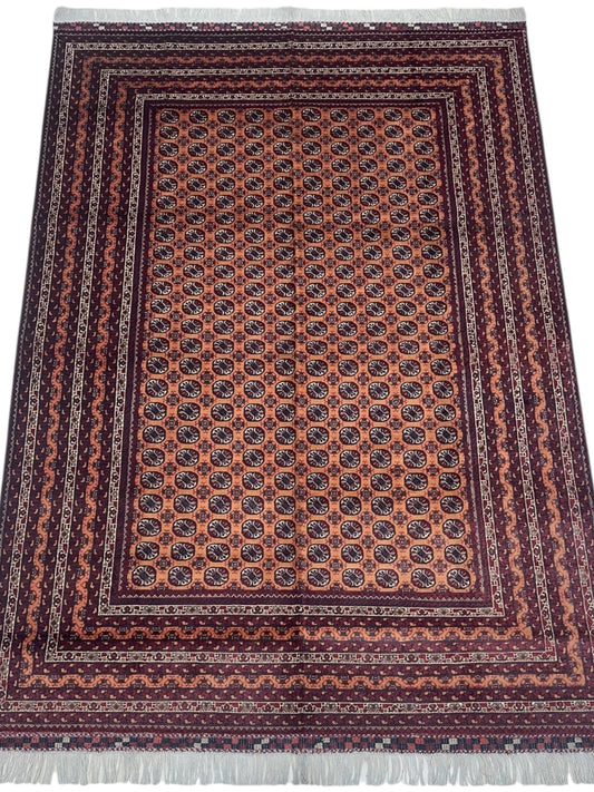 Handknuten afghansk Zerkhaki ullmatta – 6’6″ x 9’8″