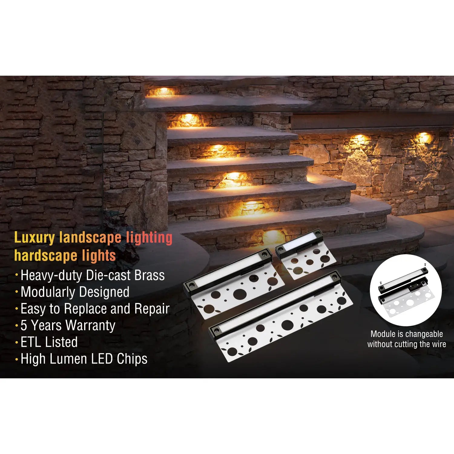 Tillverkad av hållbar mässing, är denna 12" hardscape-paver-lampa byggd för att hålla utomhus.