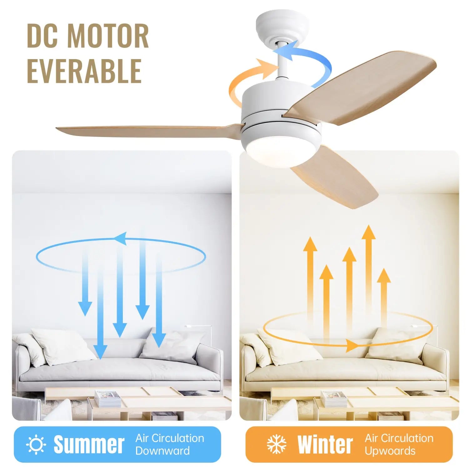 Takfläktar med ljus med reversibel DC-motor och justerbar hastighet