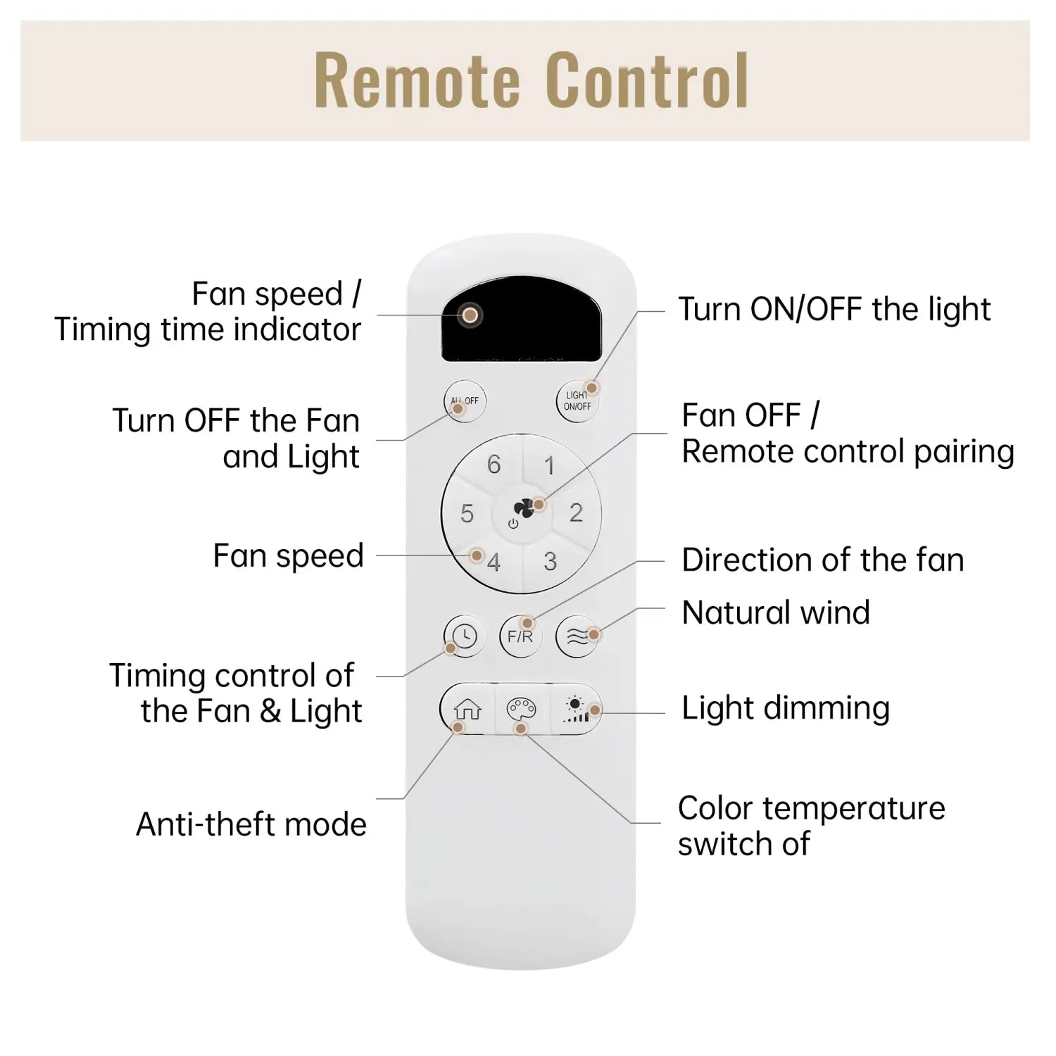 Fjärrkontrollen ger hastighets-, belysnings- och timerinställningar för enkel användning.