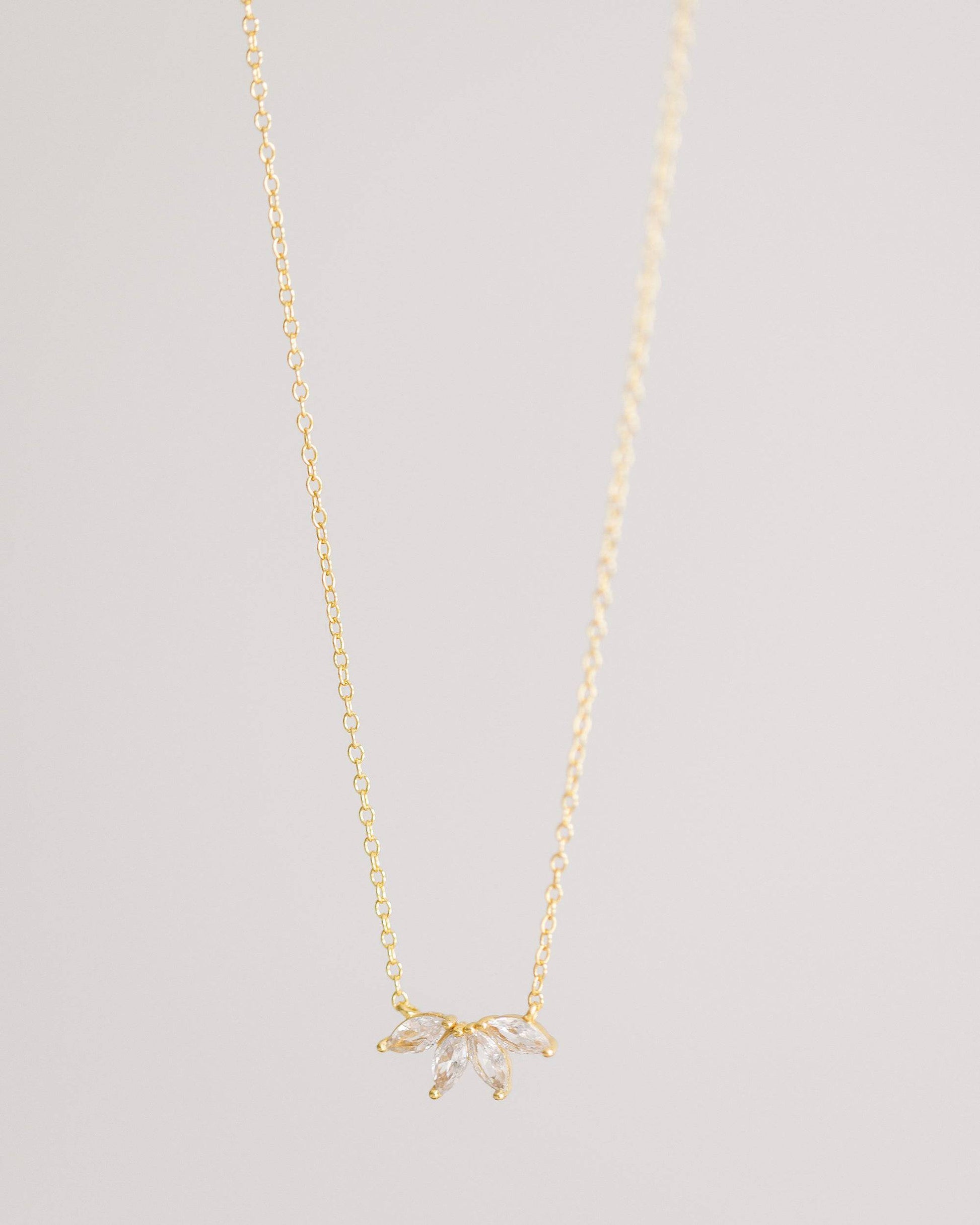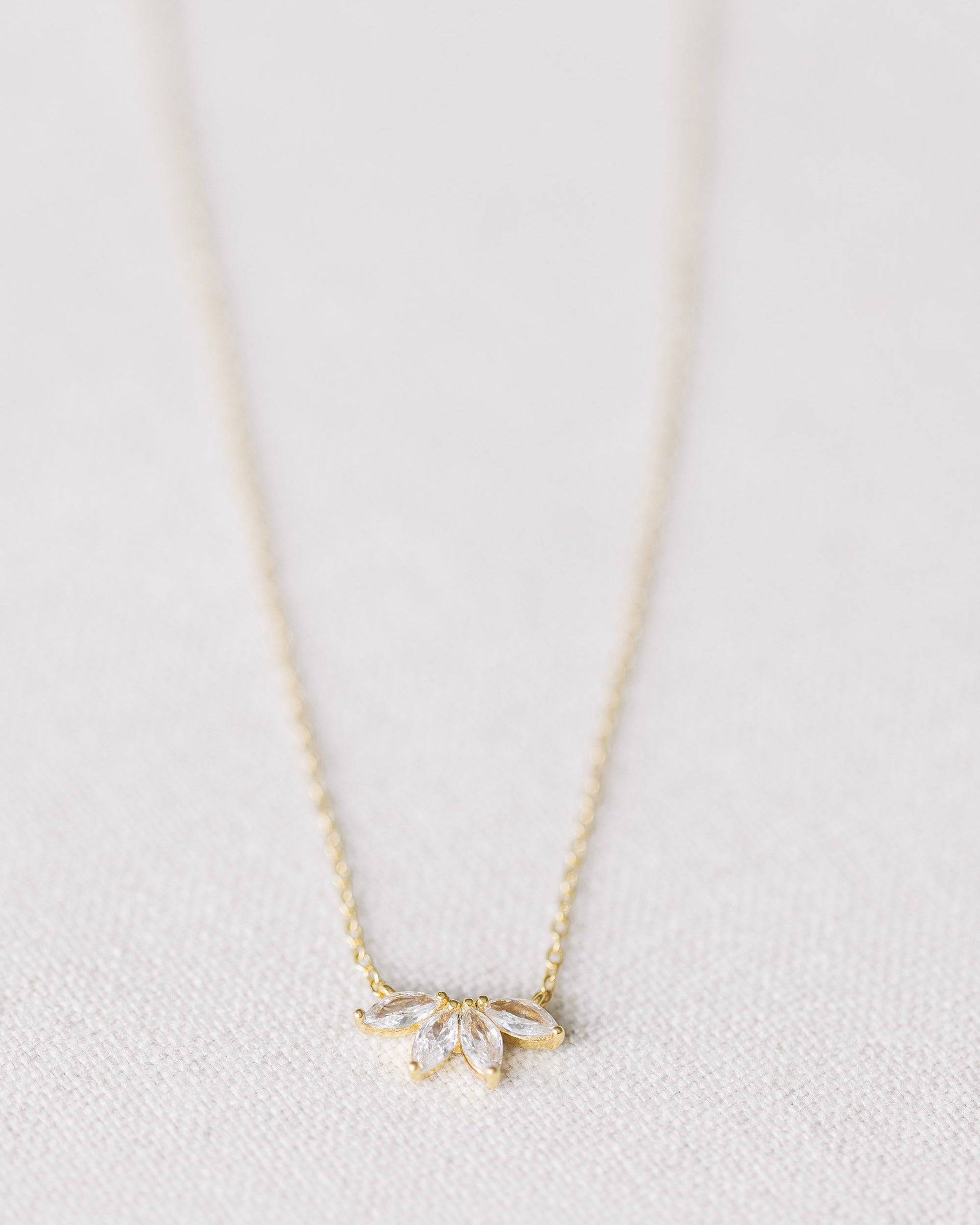 Detta fantastiska halsband med guldvermeil och kristallblomma är tillverkat av guldvermeil med en vacker kristallblomma.