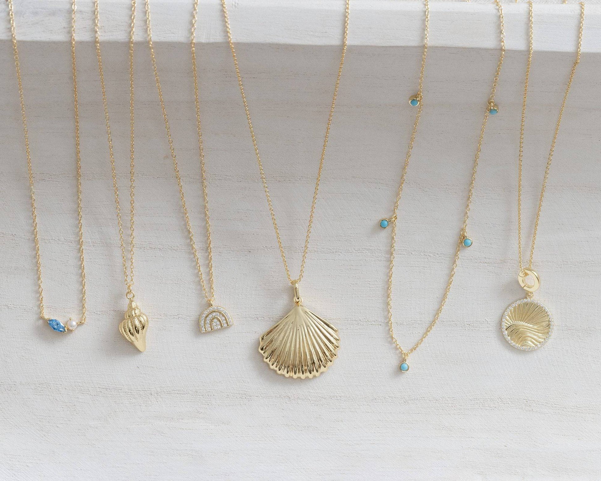 Detta vackra Gold Sanibel-halsband är tillverkat av 14k guld vermeil och format som ett platt snäckskal. Ett tidlöst smycke och en påminnelse om havets graciösa skönhet.