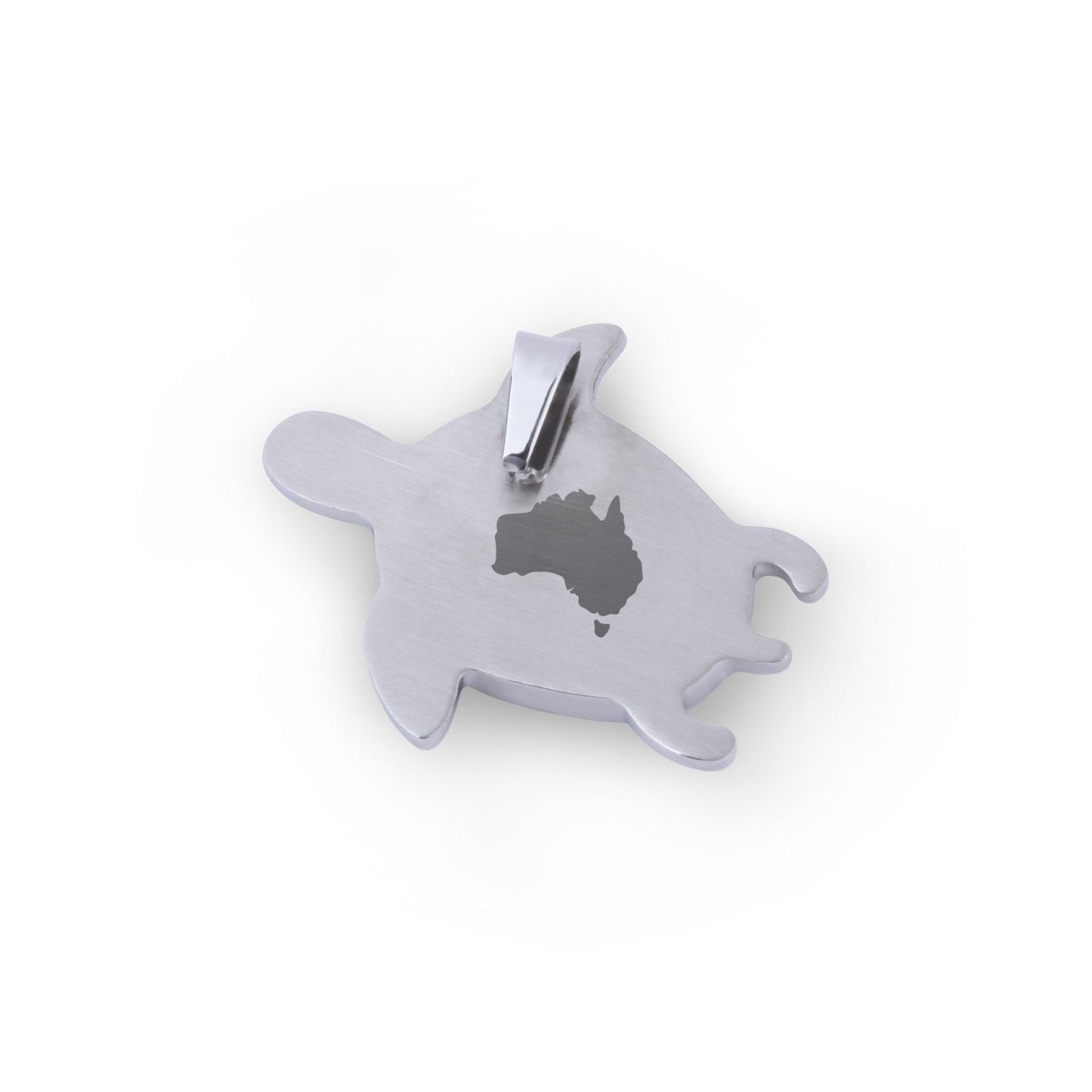 Hängsmycke i rostfritt stål med sköldpadda, inlagt med Australian Gum Burl.
