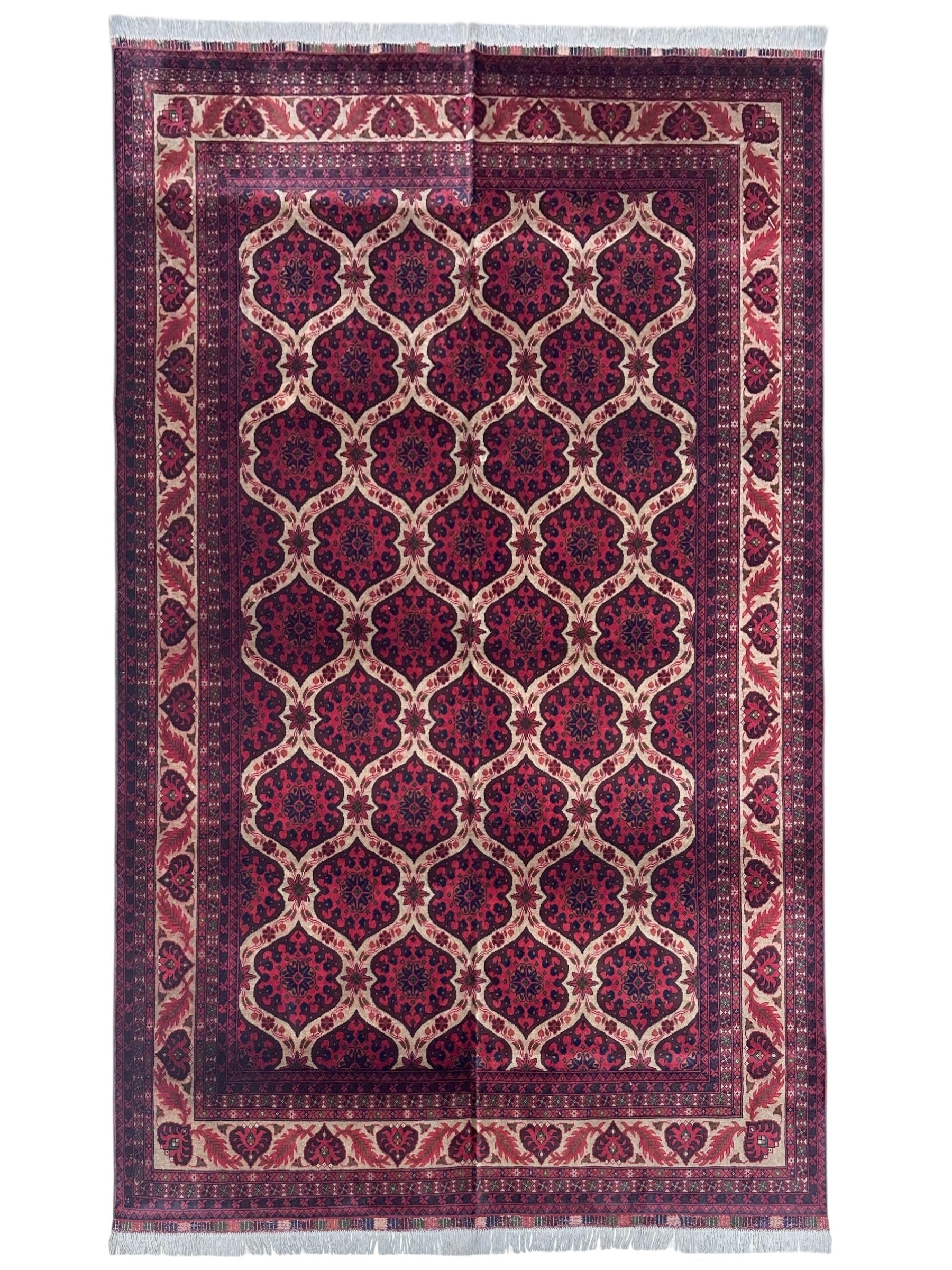 Handknuten afghansk hjärtformad ullmatta – 6’6″ x 9’5″