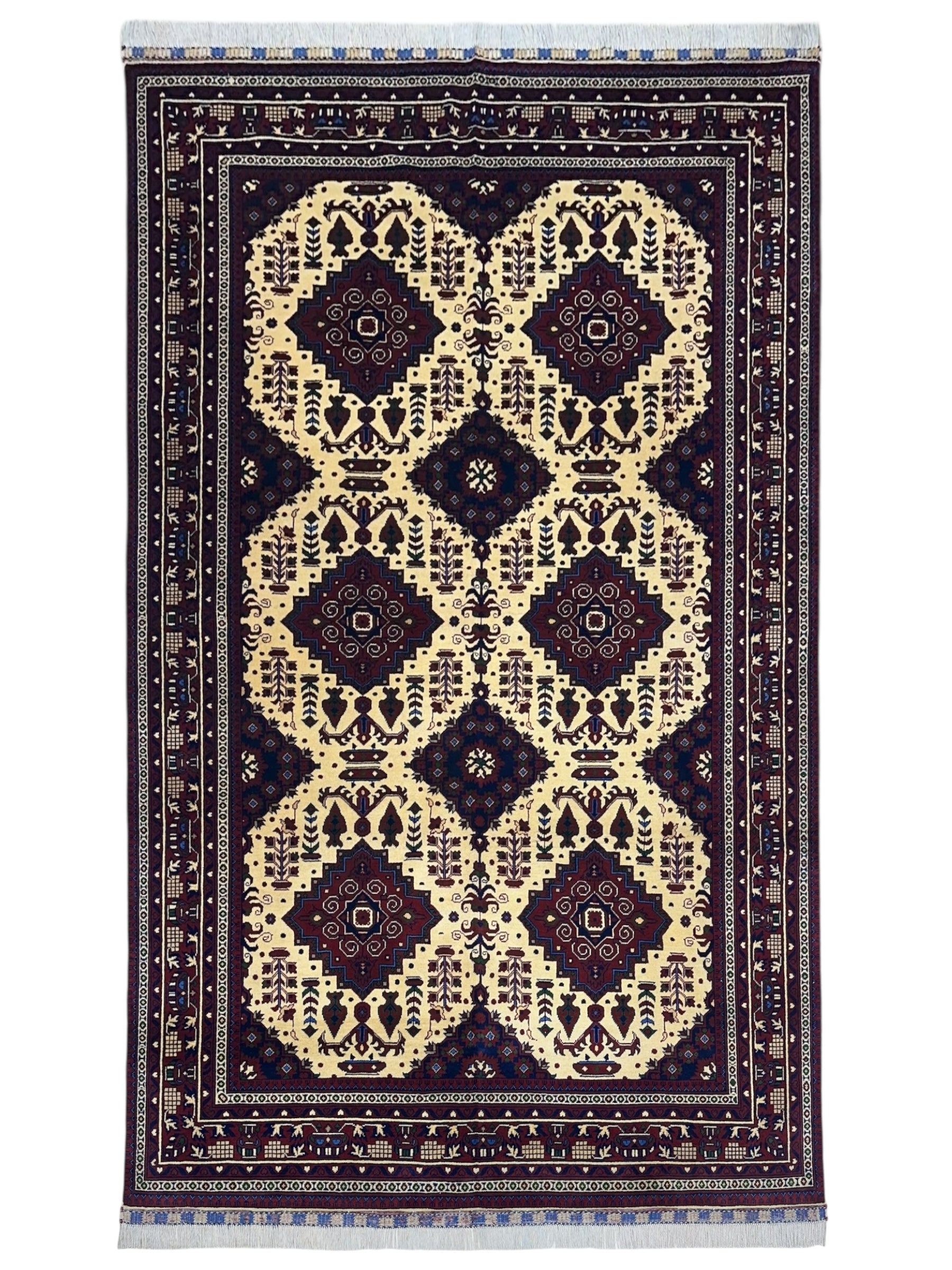 Handknuten afghansk Zerkhaki ullmatta – 6’6″ x 9’8″
