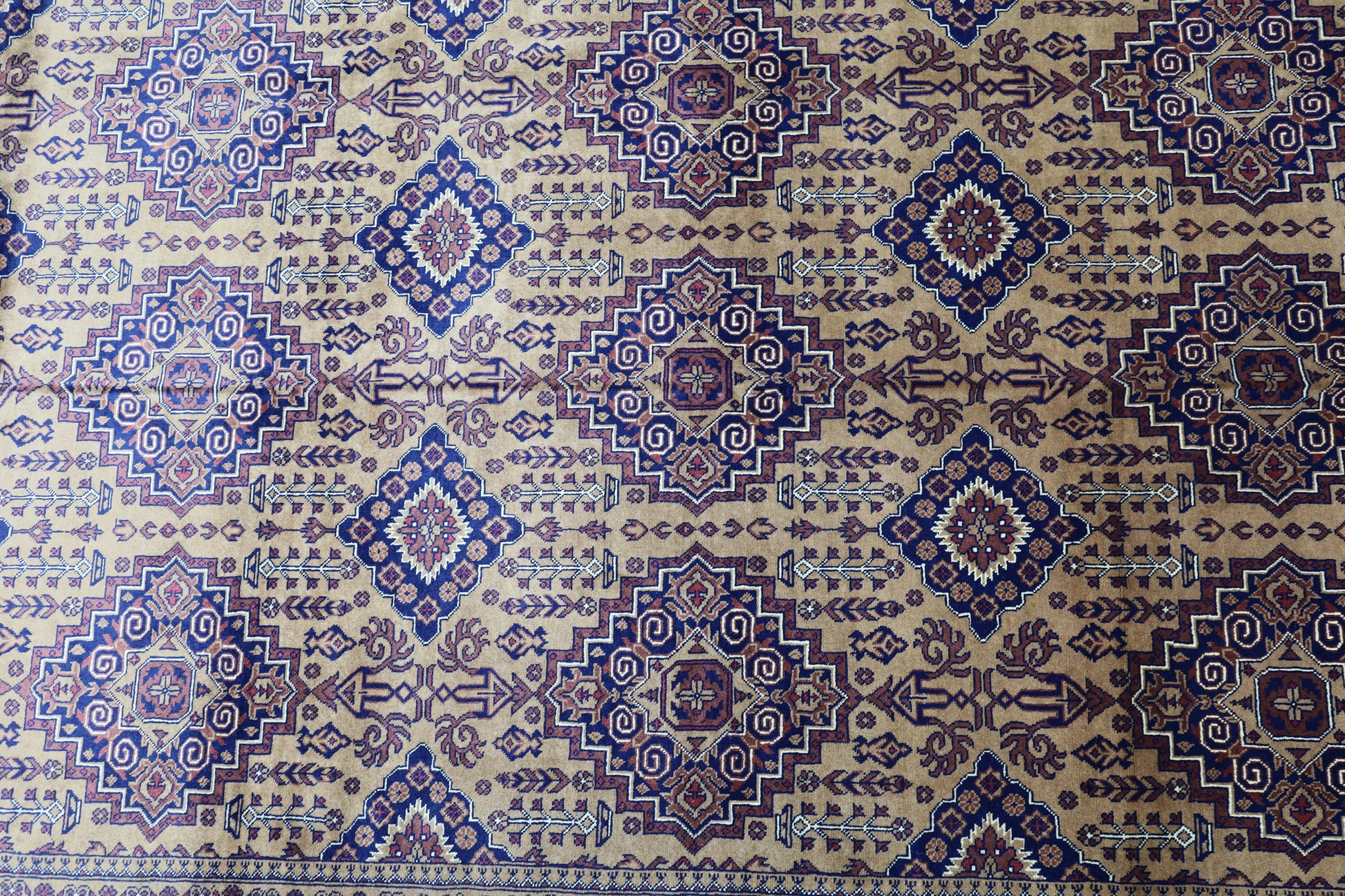 This hand-knotted zerkhaki rug features rich color tones and traditional Afghan weaving. Made with high-quality wool on a cotton foundation, it offers both beauty and durability. Ideal for adding character and texture to entryways, living rooms, or studies.