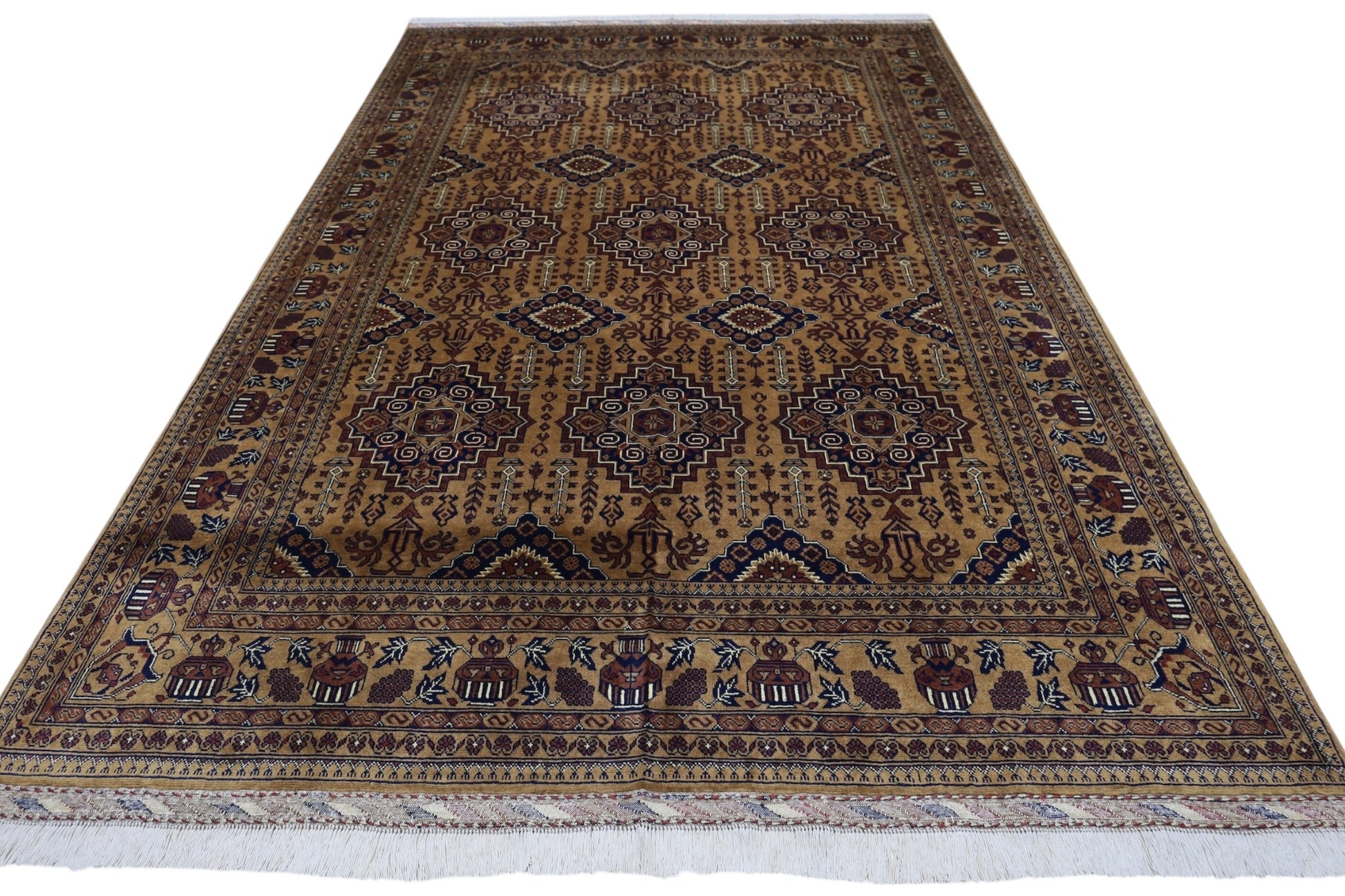 Hand-Knotted Afghani Zerkhaki Wool Rug – 6’7″ x 10’2″