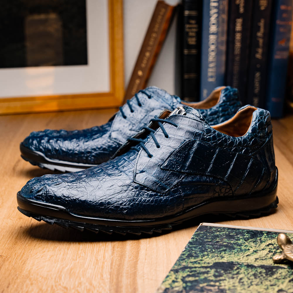 The KRATOS is our stunning genuine caiman crocodile fashion sneaker boasting an uptempo silhouette and hand painted finish. Dress these up with your favorite slacks for a sporty dress look or pair them with jeans or shorts for a casual but clean look.