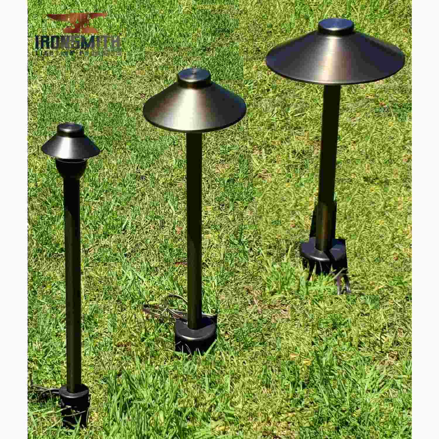 Ironsmith Lighting Products presenterar denna svampstilade stigbelysning som kan lysa upp dina gångvägar med elegans och hållbarhet. Tillverkad av massivt mässing med en oljerubbad bronsfinish.