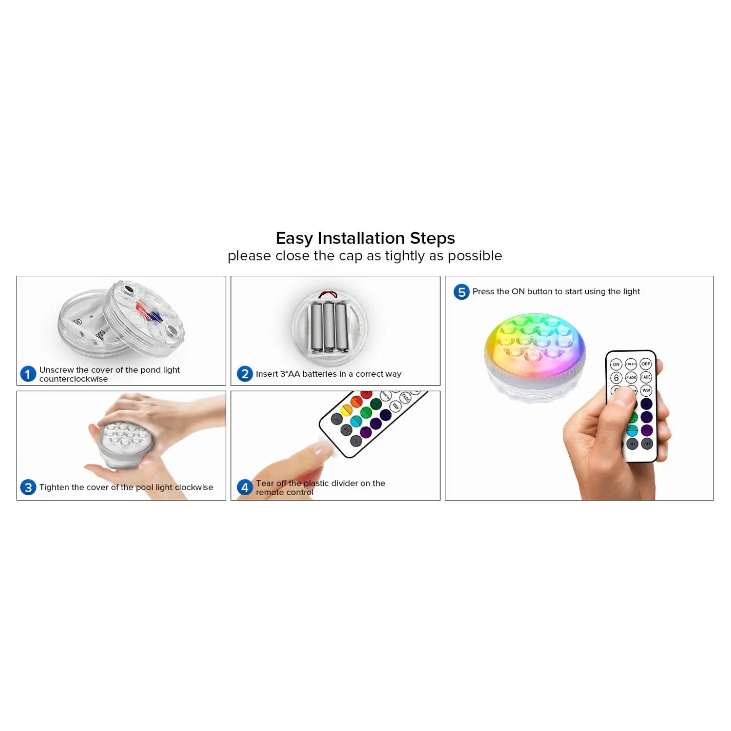 Utomhus LED-lampor Vattentät RGB Poollampa med 20 timmars drifttid