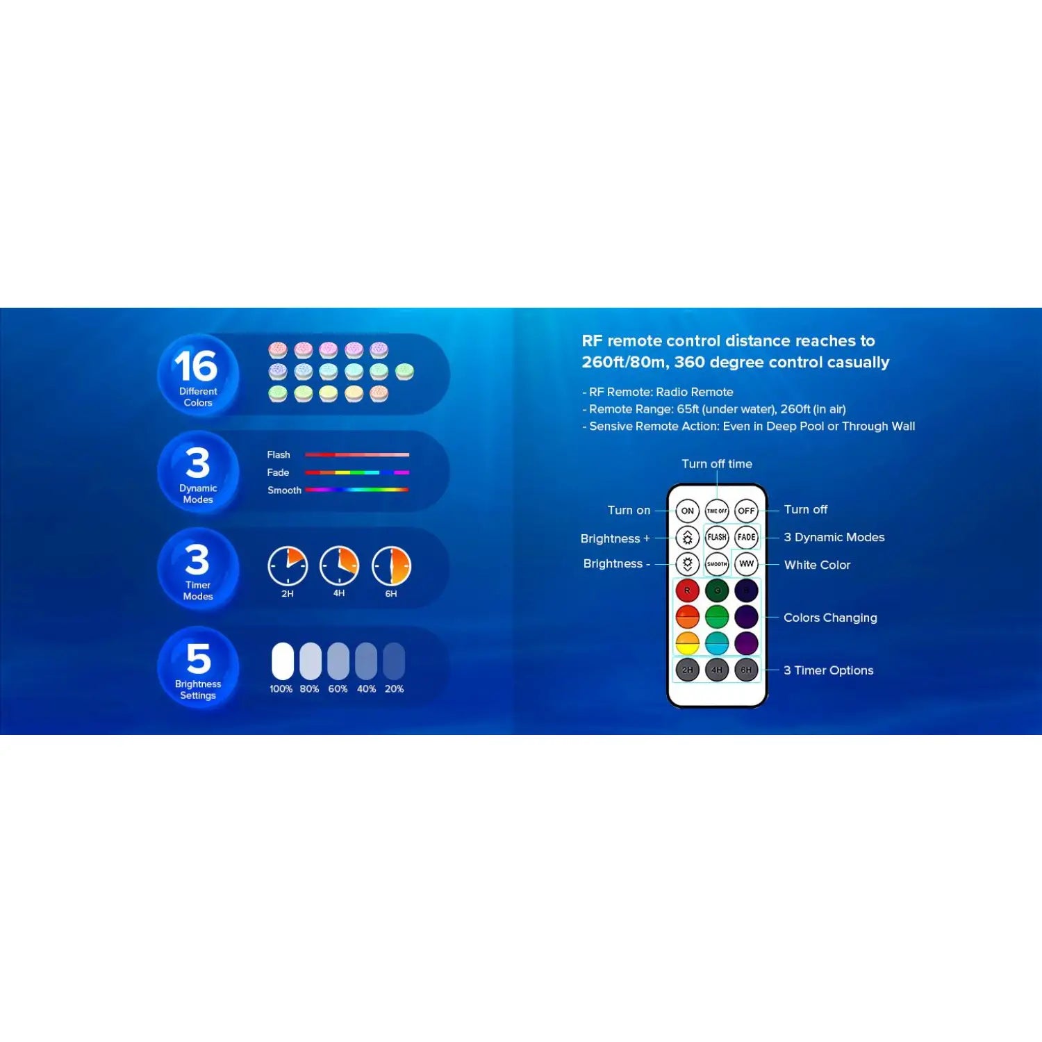 RGB-belysning erbjuder livfulla färger för simbassänger, dammar eller duschar.