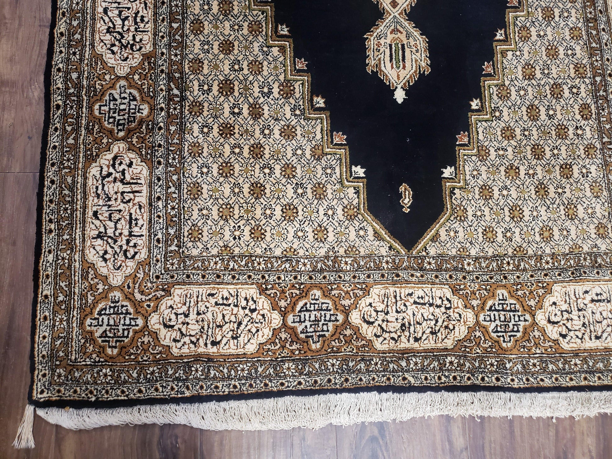 Persian Silk Qum Rug, Silk on Silk, Black Golden Brown and Beige, Hand-Knotted, 3'6" x 5' 5"