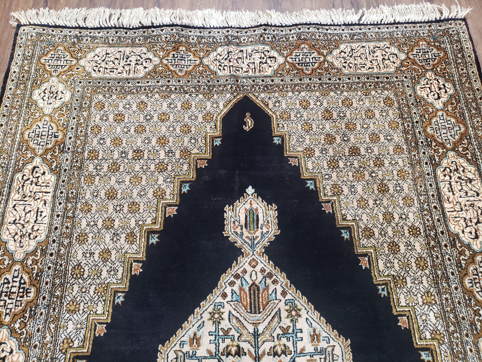 | Condition/Notes | A beautiful vintage authentic silk on silk oriental rug in very good condition. A very high quality and fine piece. Free of stains, odors, discolorations, tears, etc. Good pile & fringes. Can be hung or used on the floor. Recently cleaned and ready to be enjoyed in your space. |