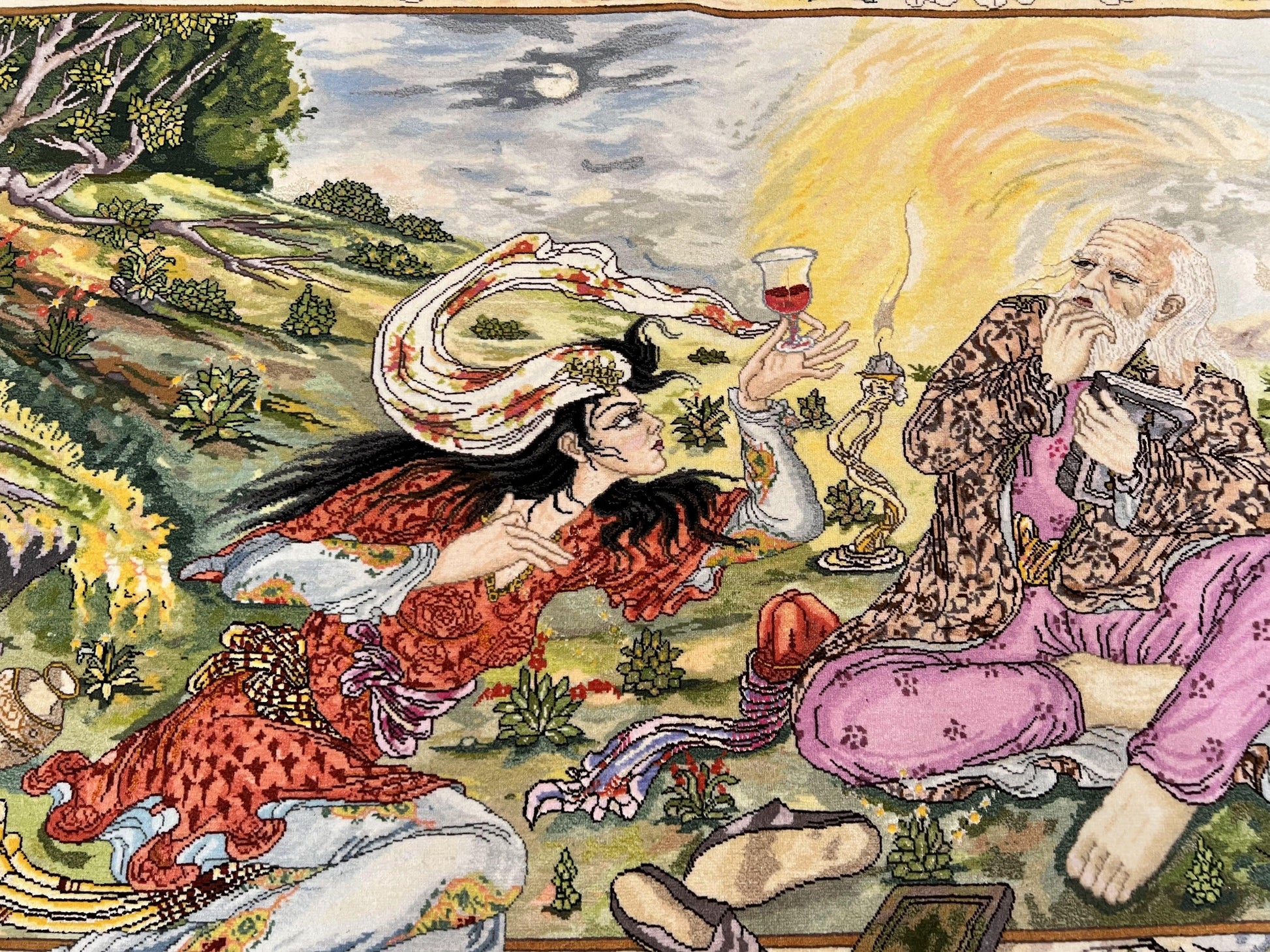 | Condition/Notes | A beautiful semi-antique genuine oriental rug in very good condition. Very finely knotted. A pictorial rug also featuring poetry from Hafez. Free of stains, odors, discolorations, tears, etc. Good pile & fringes. Recently cleaned and ready to be enjoyed in your space. |