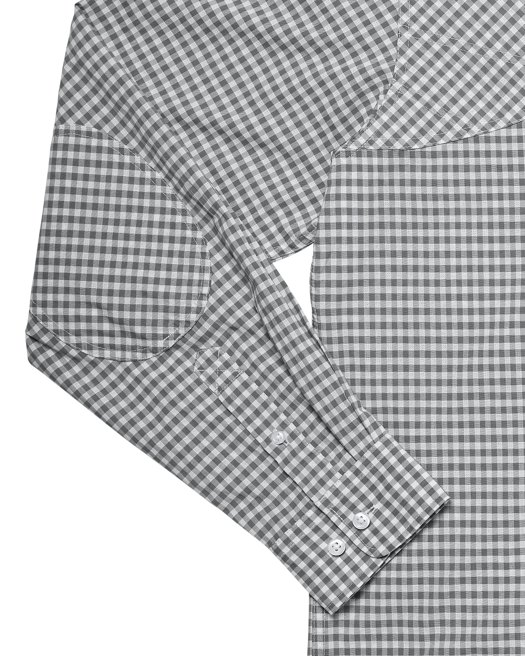 Denna skjorta är tillverkad av ett lätt och lyxigt 3,5 oz bomulls-performance-ginghamtyg. Tyget i sig är otroligt andningsbart tack vare dess integrering av en porös våffelstruktur vävd genom hela tyget. Skjortan inkluderar också användbara funktioner som en mikrofiberduk för rengöring vid nederkanten och vår egen Tech Vent®-ventilation under armen.