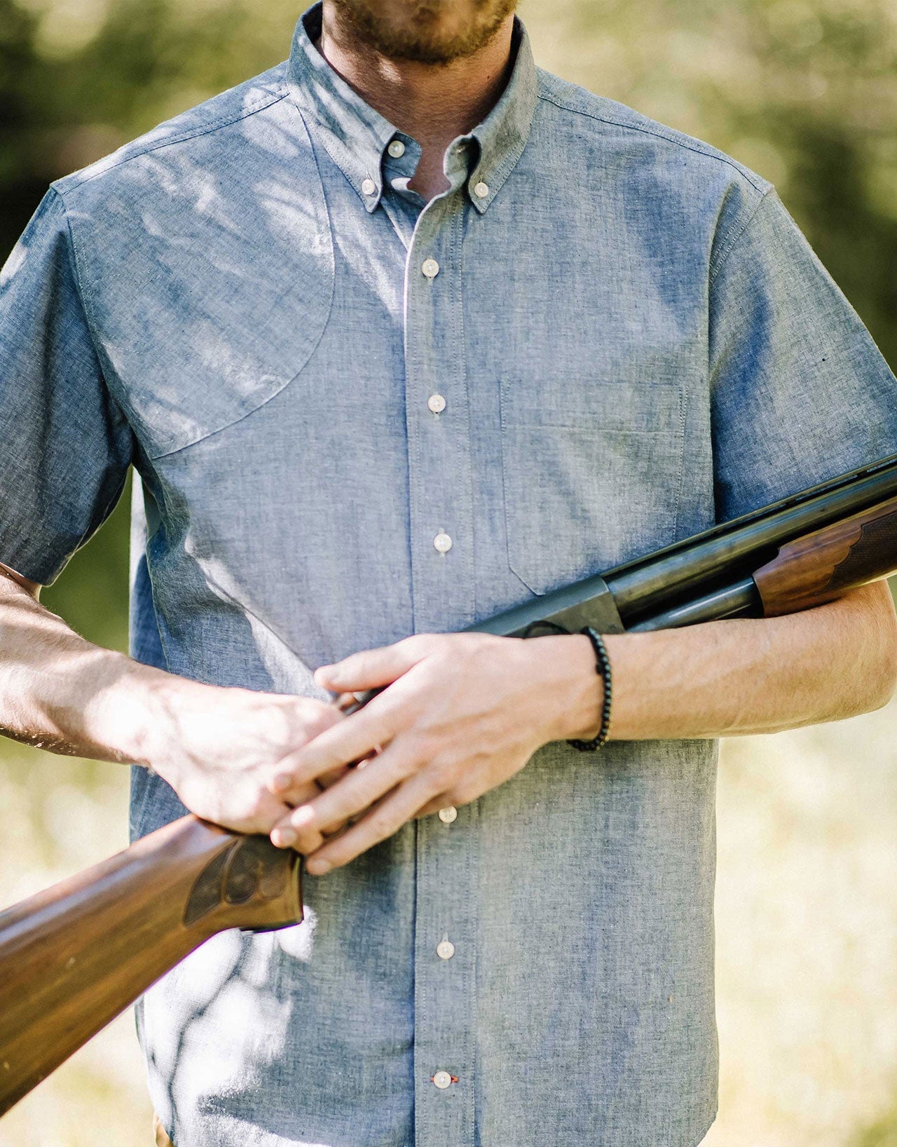 Vår bästsäljande Sportsman-skjorta, nu tillgänglig i kortärmad chambray för den perfekta kombinationen av andningsförmåga och hållbarhet. Denna skjorta med knappkrage har dubbelstickning överallt, subtil förstärkning på skjutaxeln och vår Tech Vent®-ventilation under armarna för att hjälpa dig hålla dig sval när du svingar en hagelbössa eller kastar ett spö.