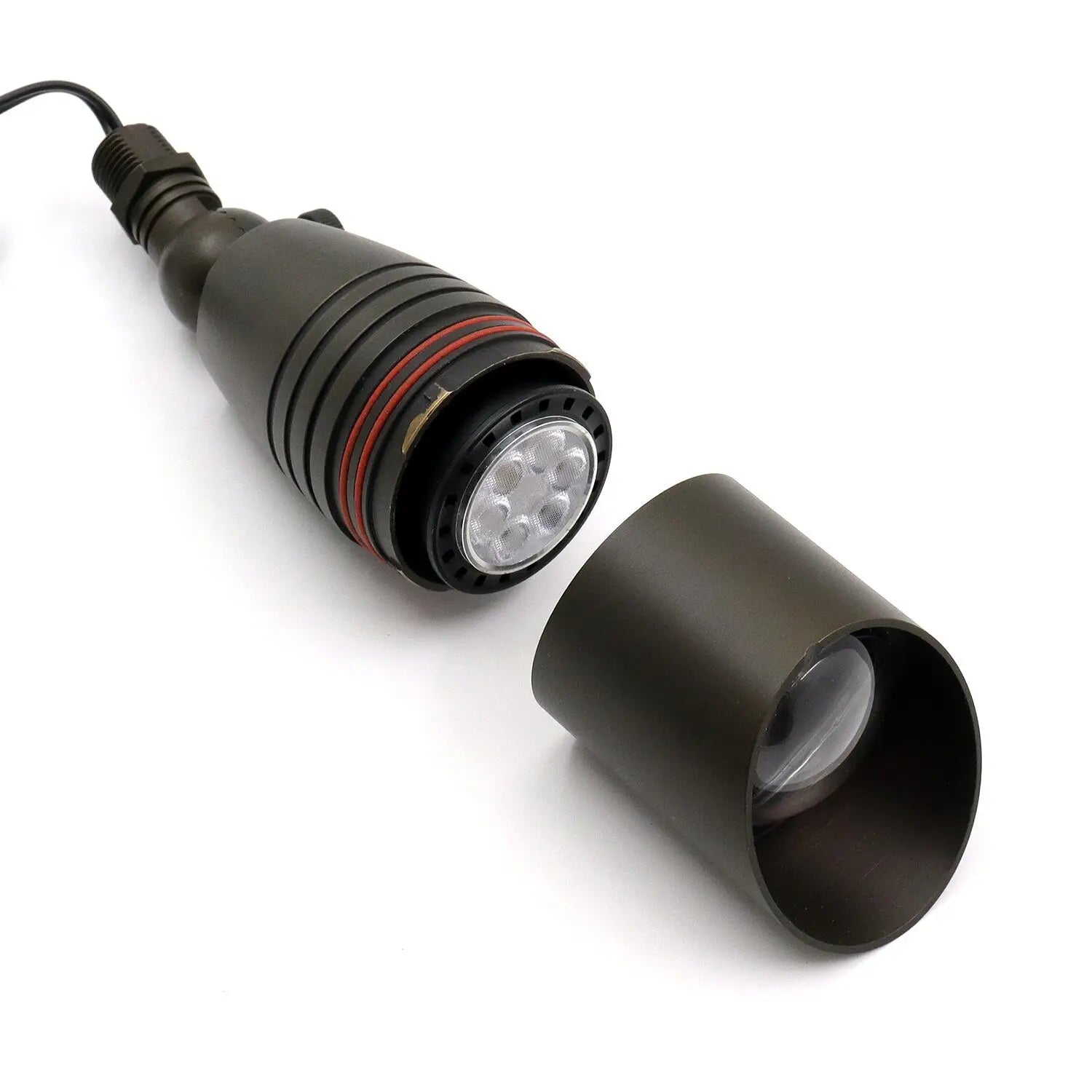 Färdigställda i antikbrons är dessa armaturer designade för att rymma MR16-lampor och erbjuder mångsidiga belysningslösningar för utomhus- eller landskapsapplikationer (lampa ingår ej).