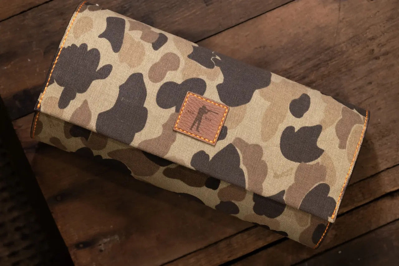 Håll dina klockor säkra och stilfulla med Ball and Buck Watch Roll. Designad för klockentusiaster som uppskattar fint hantverk, håller den säkert tre klockor på individuella avtagbara kuddar. Med vår signatur Ball and Buck original camo och premium läderetikett speglar watch roll vårt engagemang för kvalitet och hållbarhet. Handgjord i Kanada, är det den perfekta accessoaren för dina älskade klockor eller den perfekta gåvan till klockentusiasten i ditt liv.